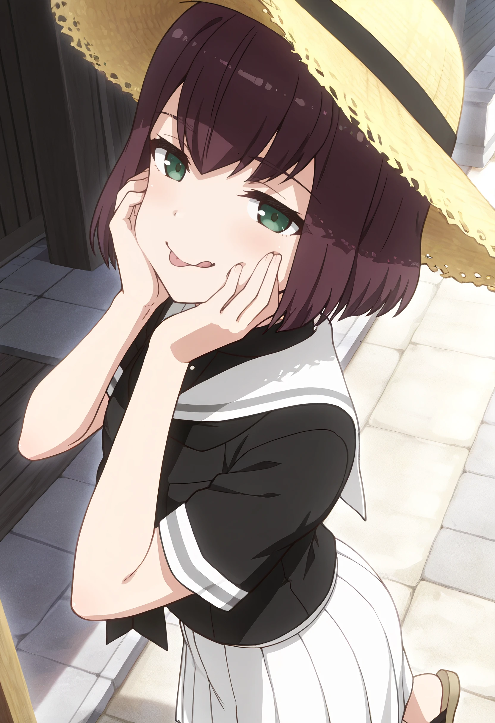 TNMYamazaki, short hair, brown hair, green eyes, bob cut,