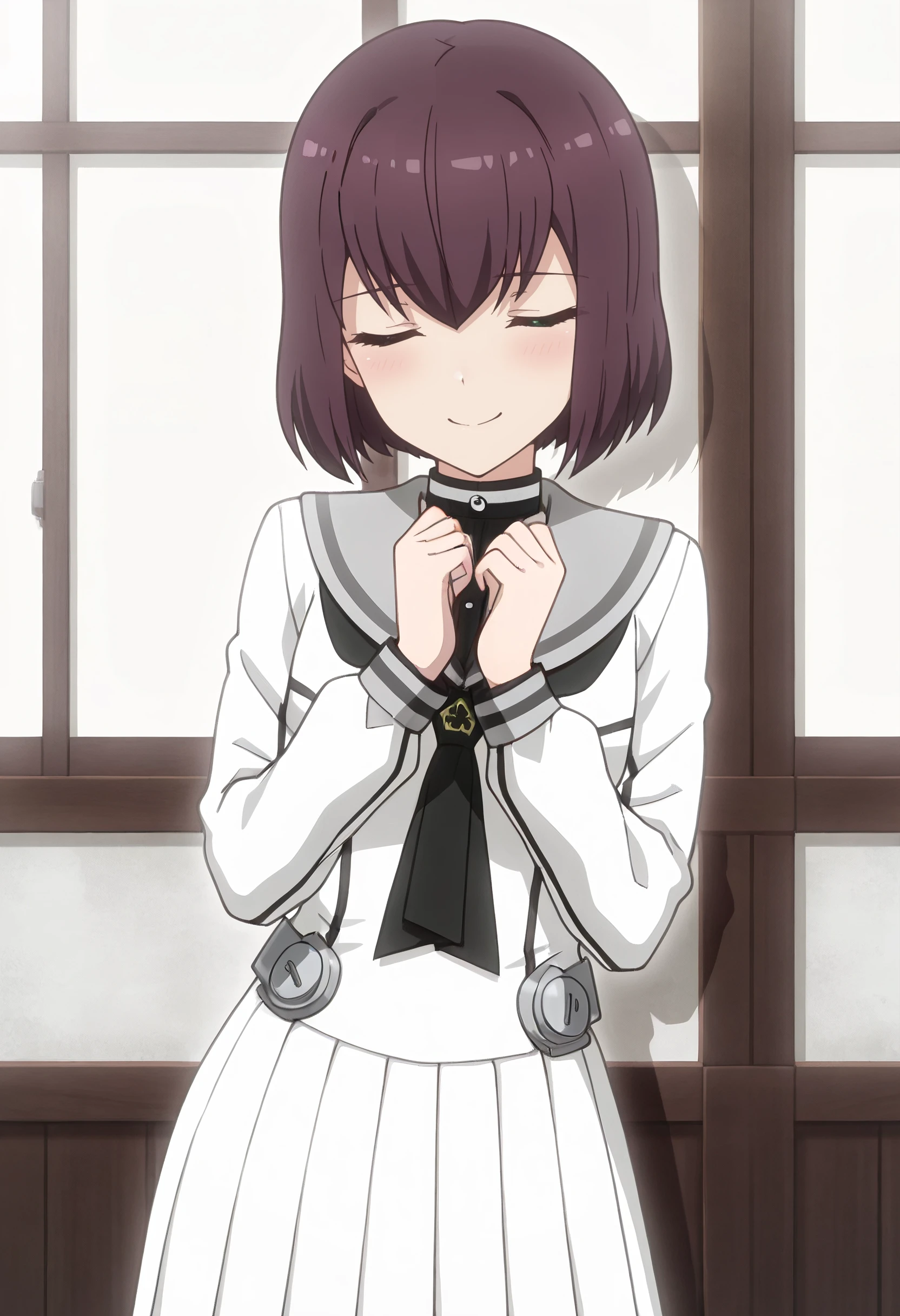 YamazakiSchool, school uniform, sailor collar, serafuku, pleated skirt, long sleeves, neckerchief, skirt, black neckerchief, sailor dress, grey sailor collar, white skirt, white serafuku, pleated dress, white dress,