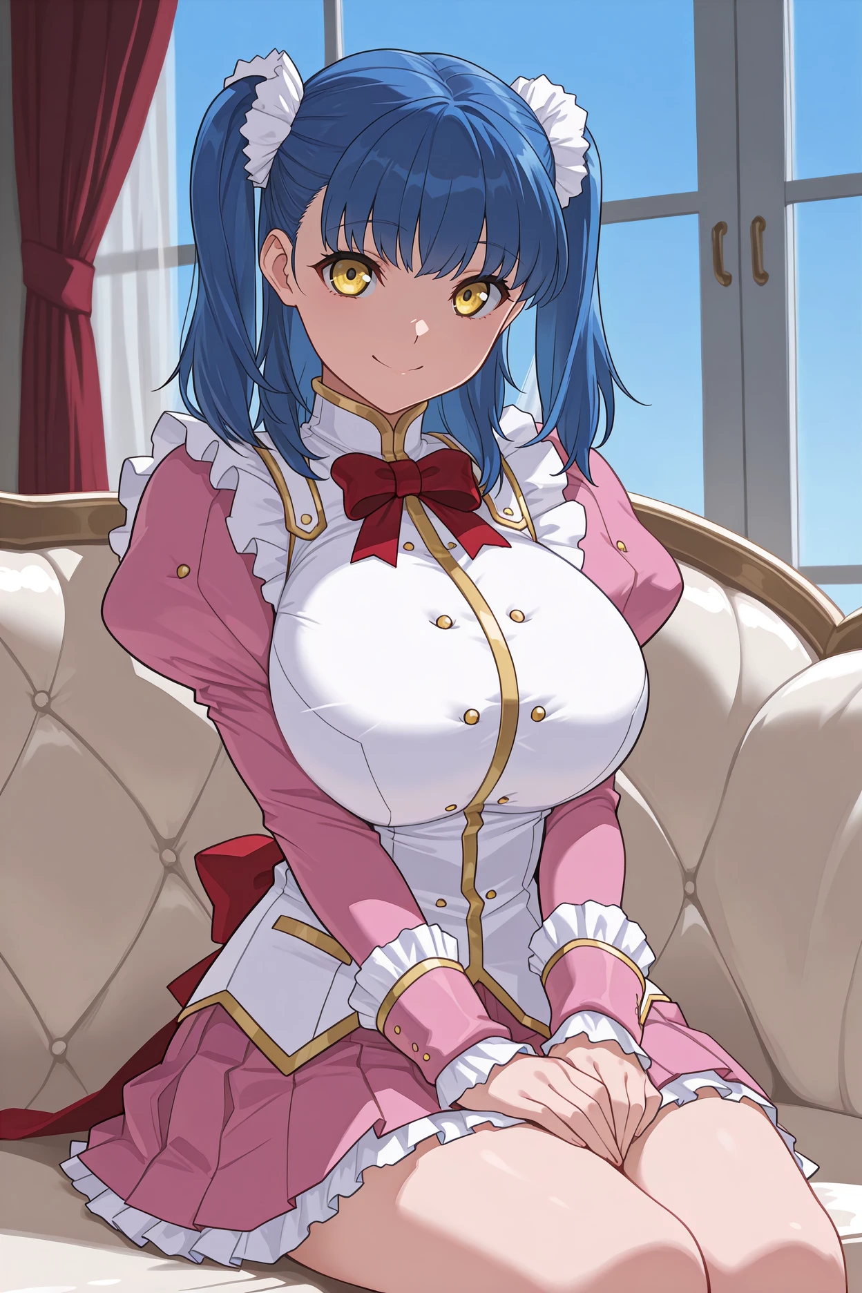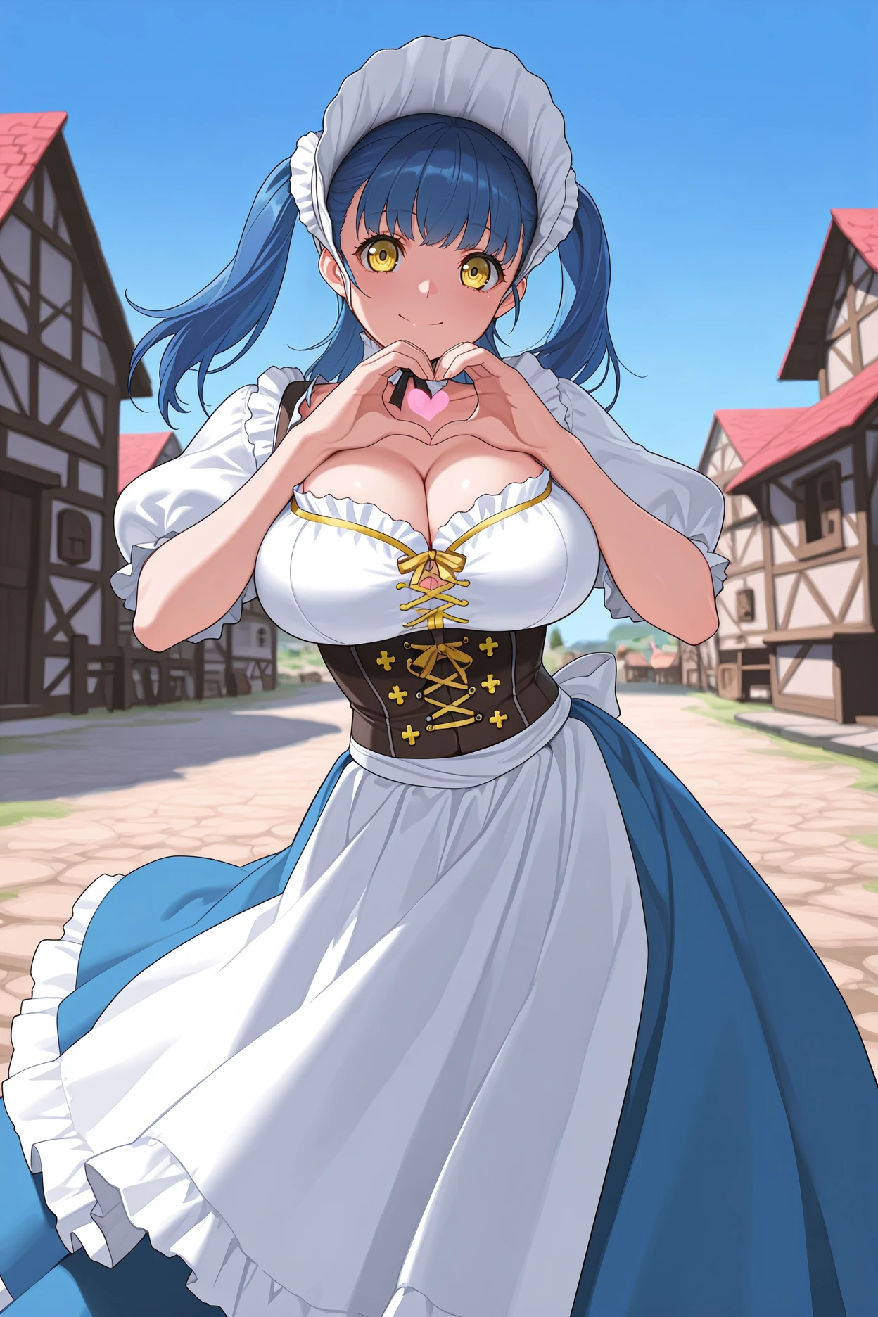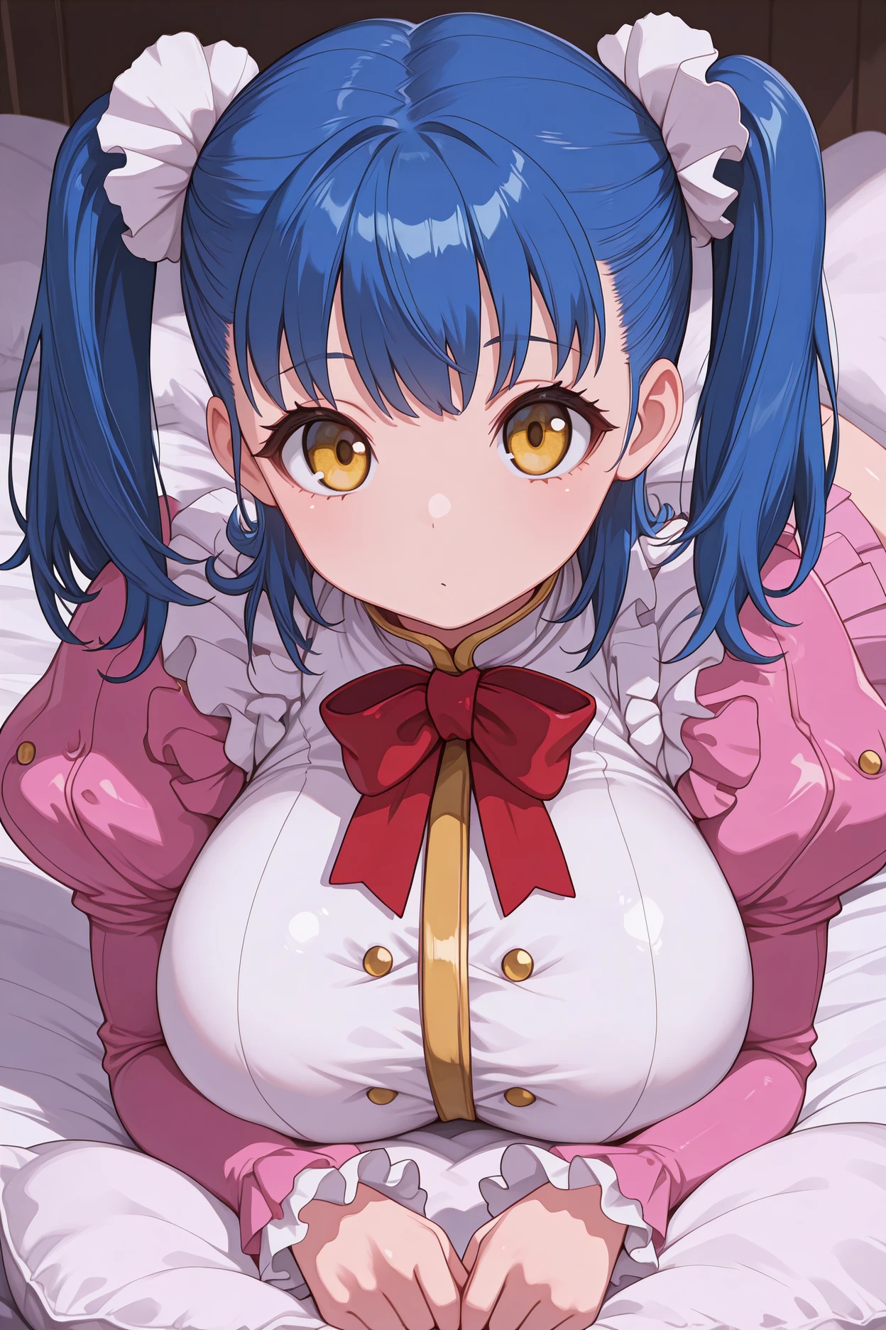 gvtuile, blue hair, twintails, medium hair, yellow eyes