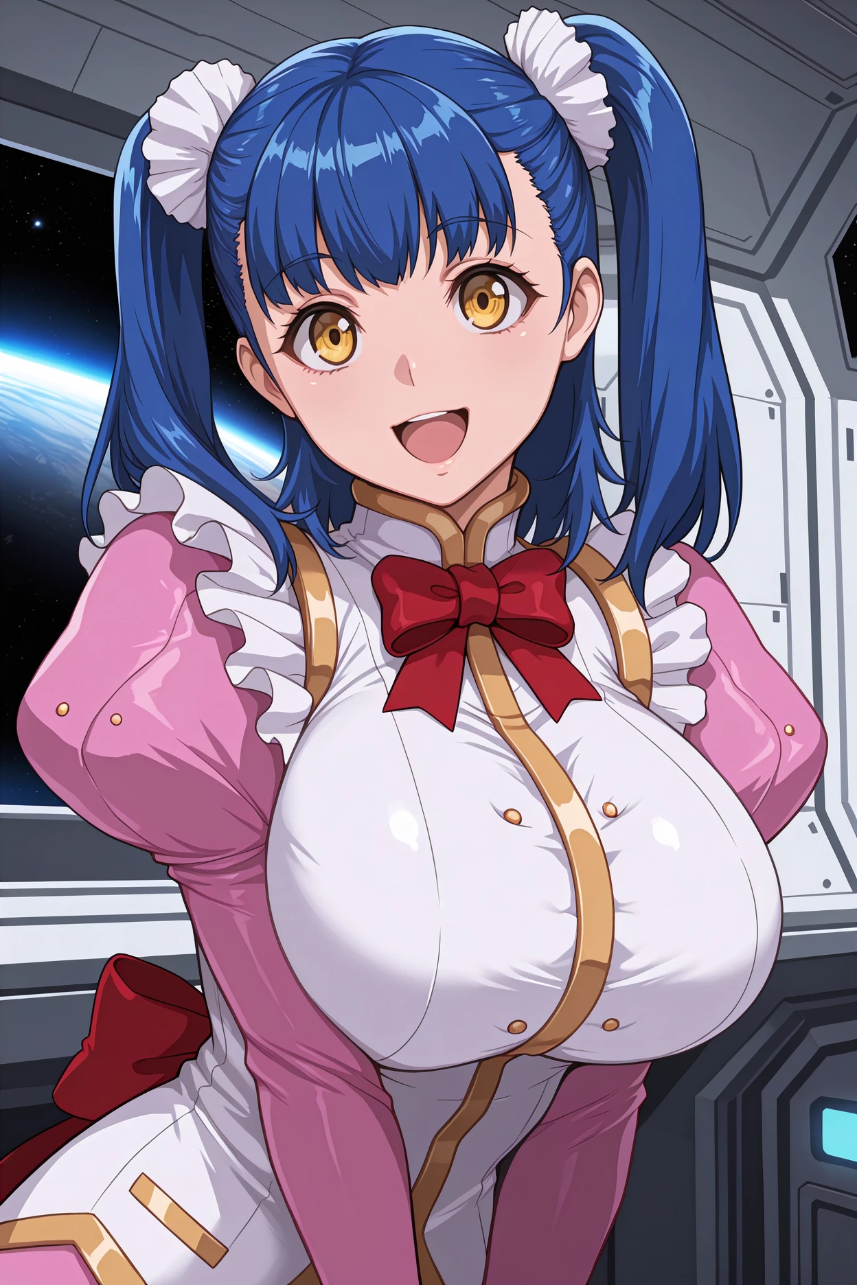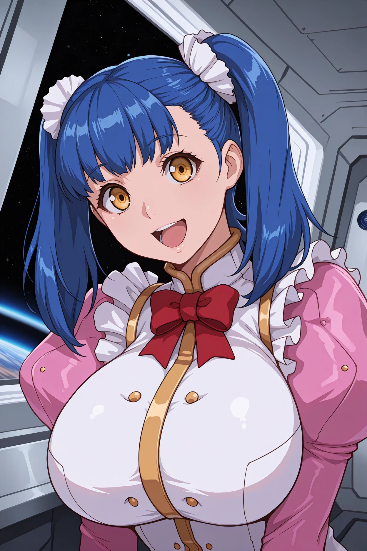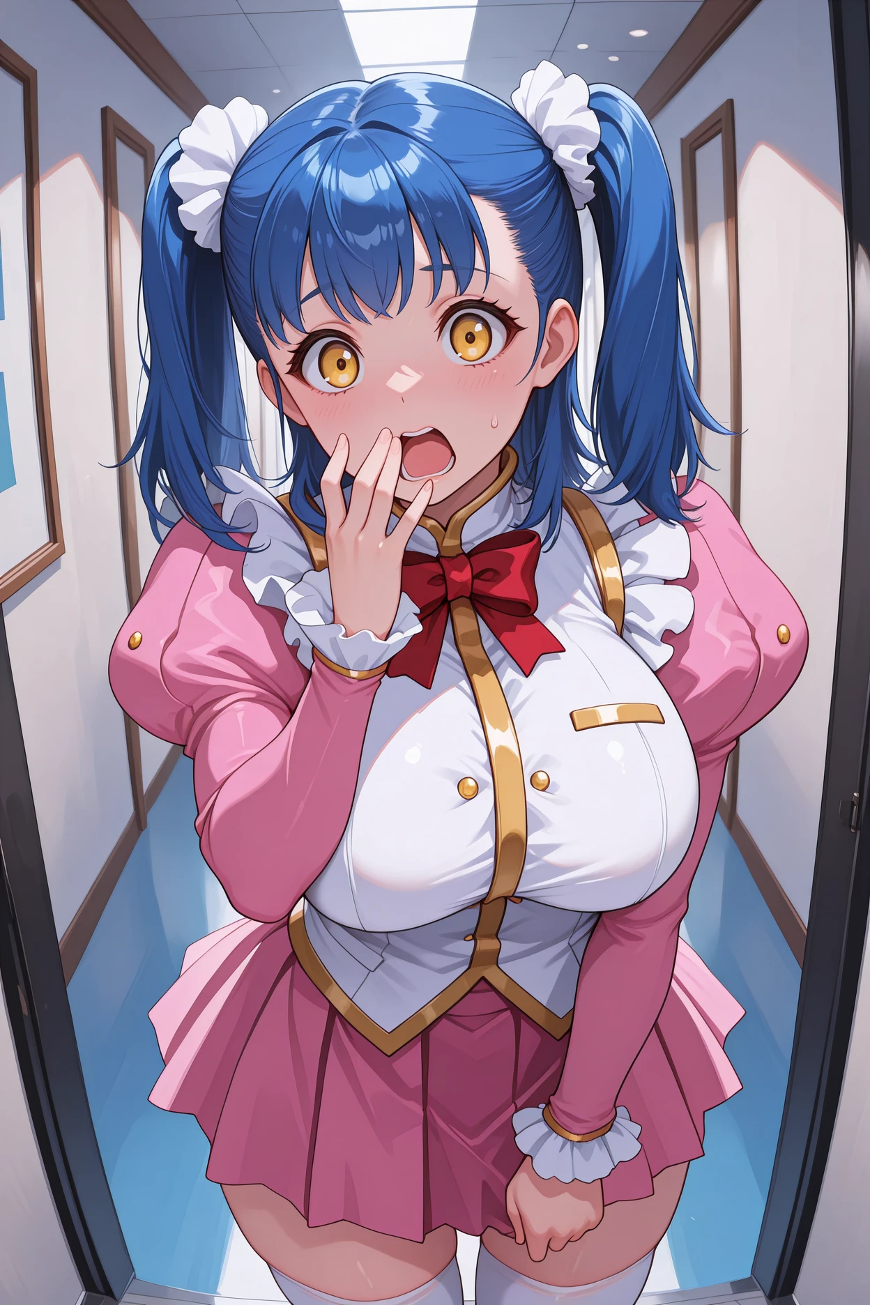 gvtuile, blue hair, twintails, medium hair, yellow eyes
