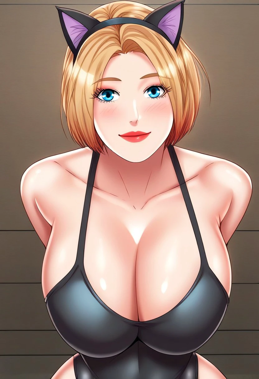 Hye-Mi: hye-mi, beautiful brown eyes, beautiful brown hair, beautiful medium bob haircut, bangs, big and shaggy breasts,