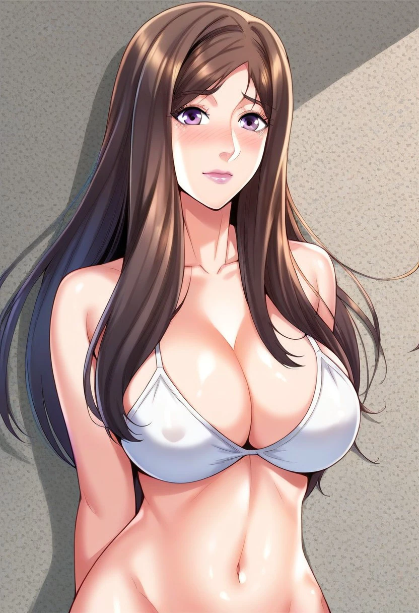 Han Yu-Ra: han_yu-ra, beautiful purple eyes, beautiful brown hair, beautiful long hair, huge and shaggy breasts,