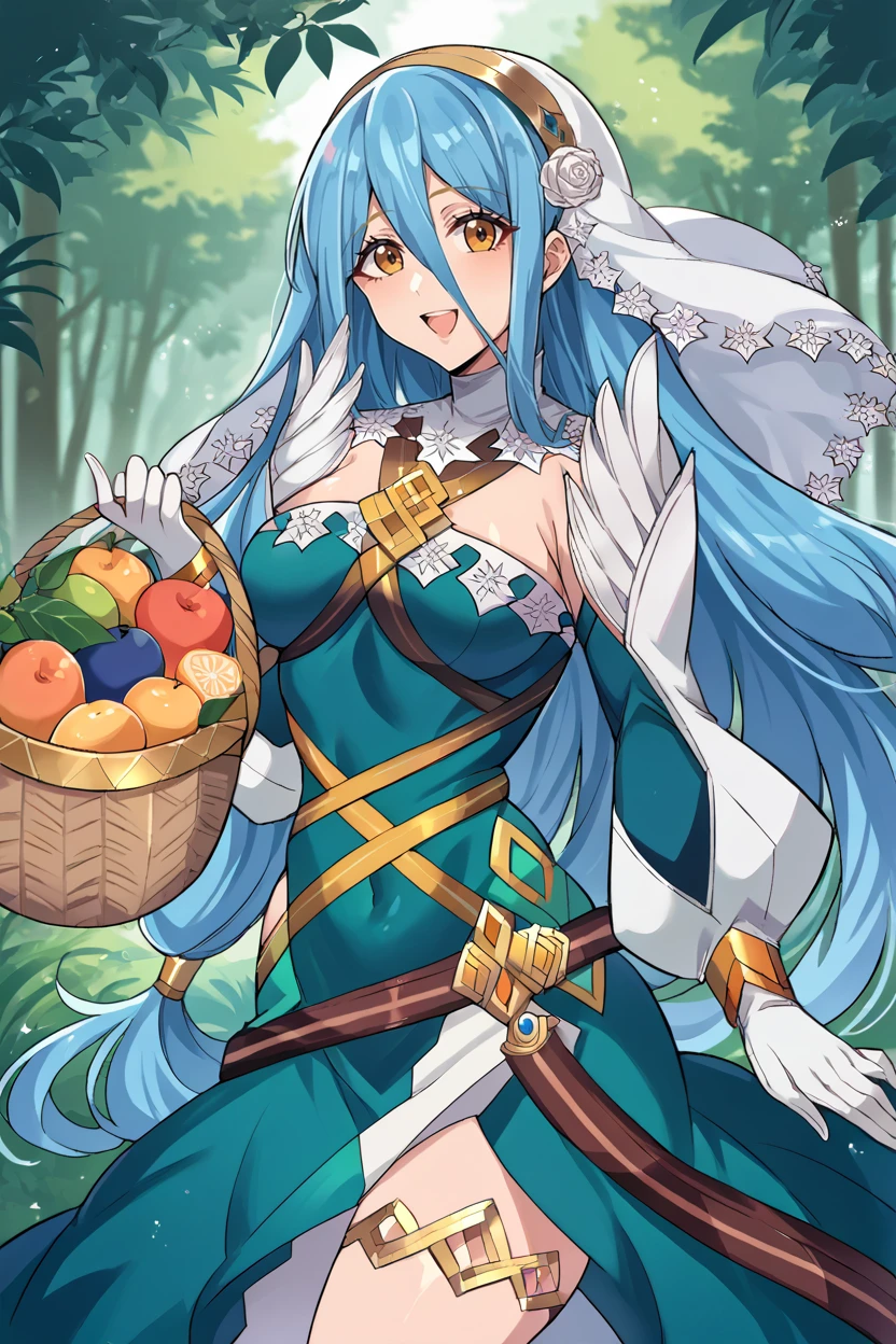 Add "respAzu, blue hair, white veil, gold hairband, cyan dress, brown belt, gold straps, white gloves, thighlet" for Resplendent Azura.