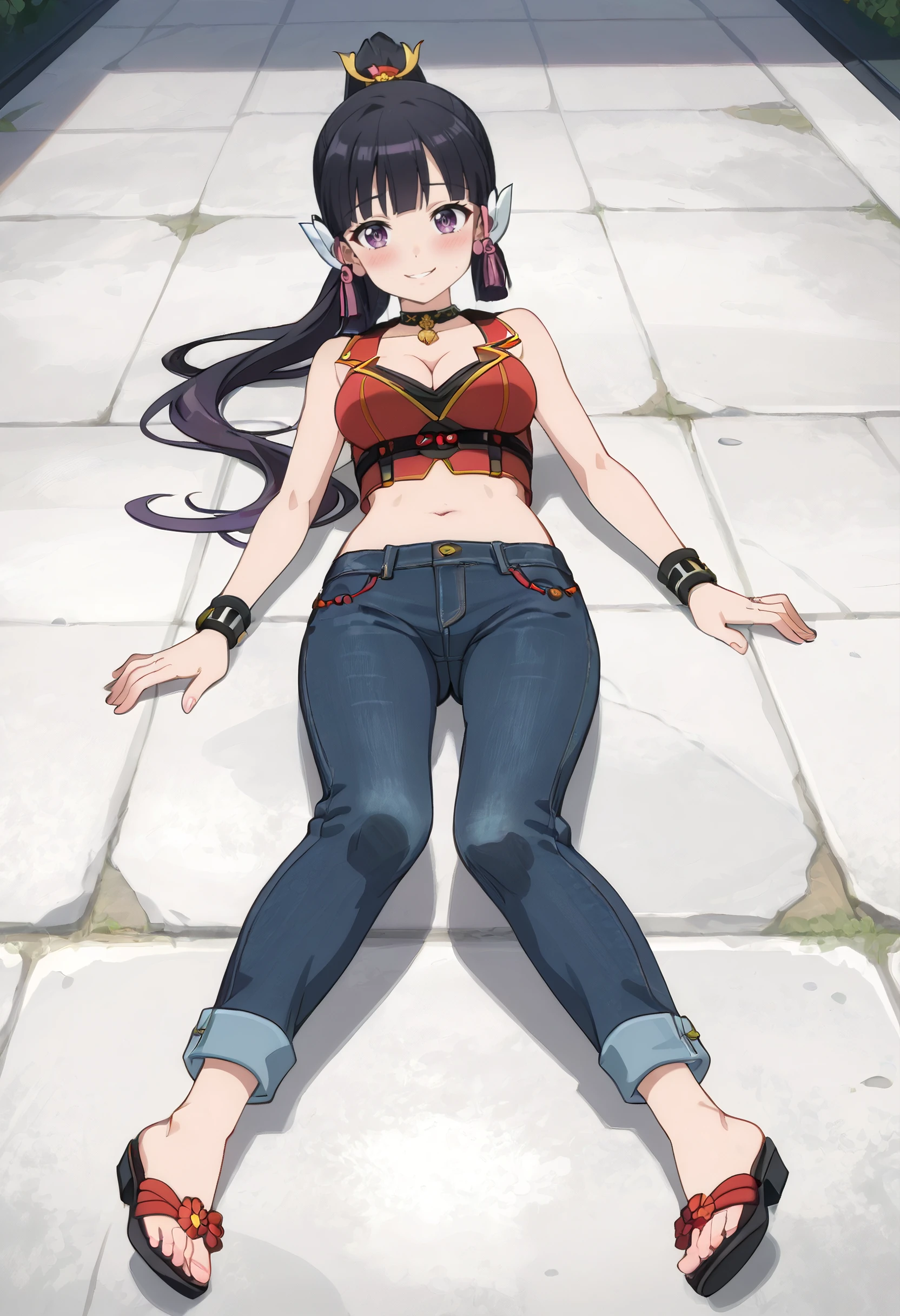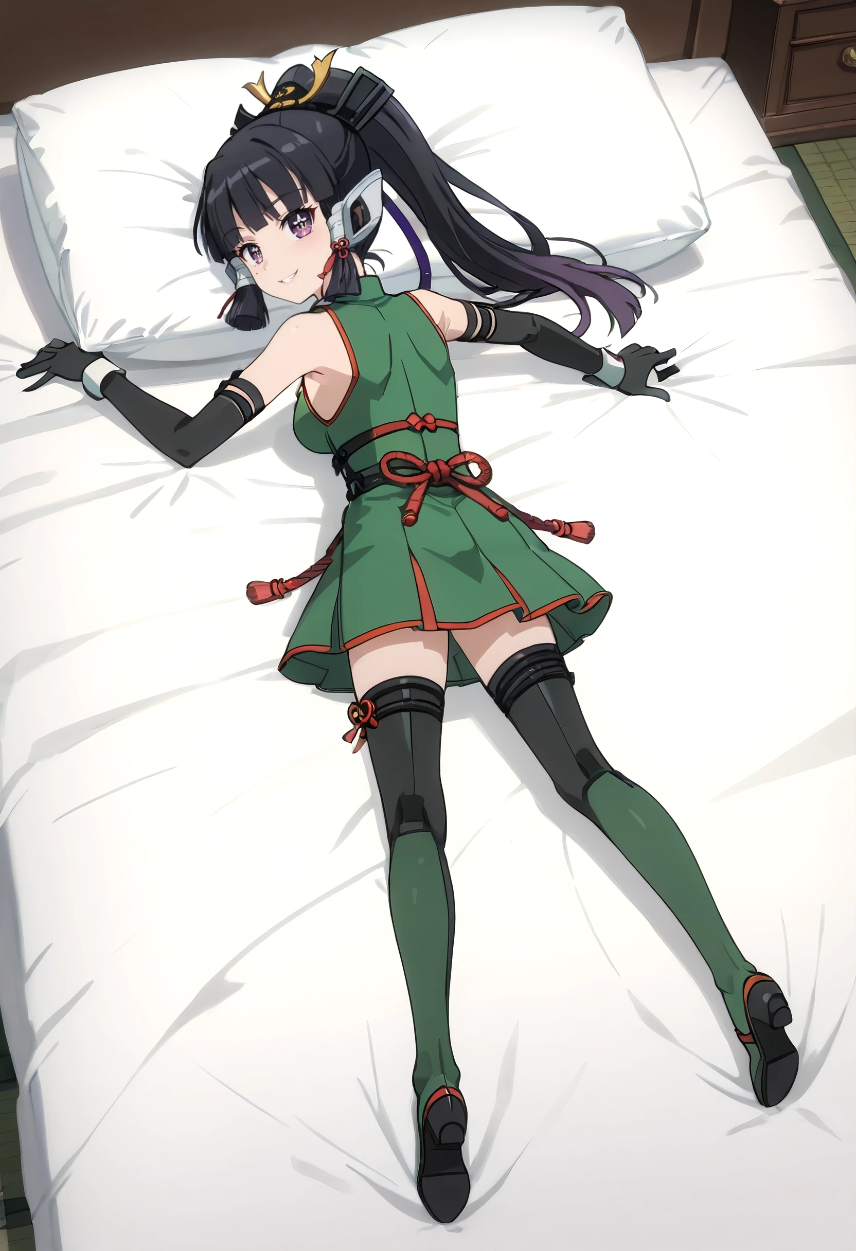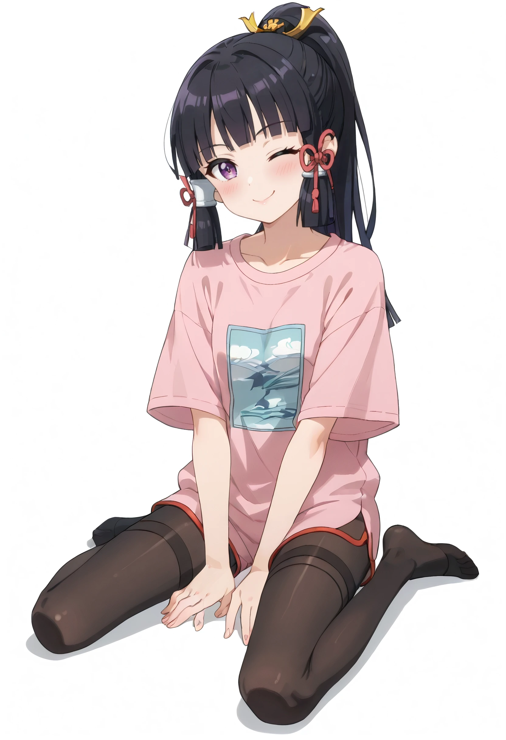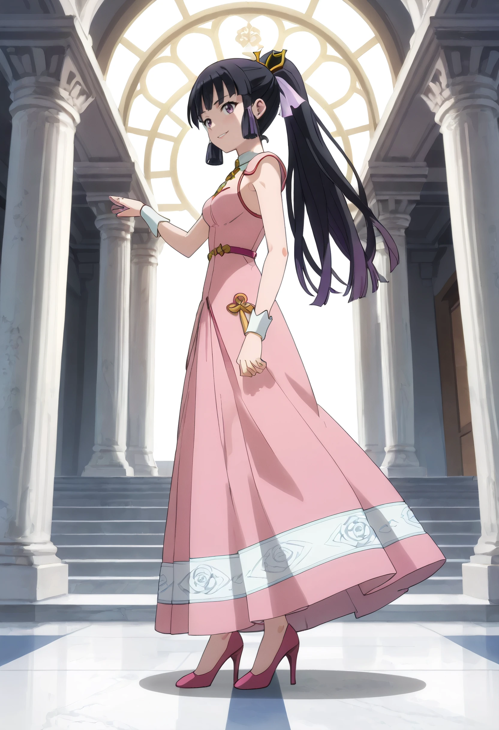SMSSayaka, black hair, long hair, purple eyes, bangs, ponytail,