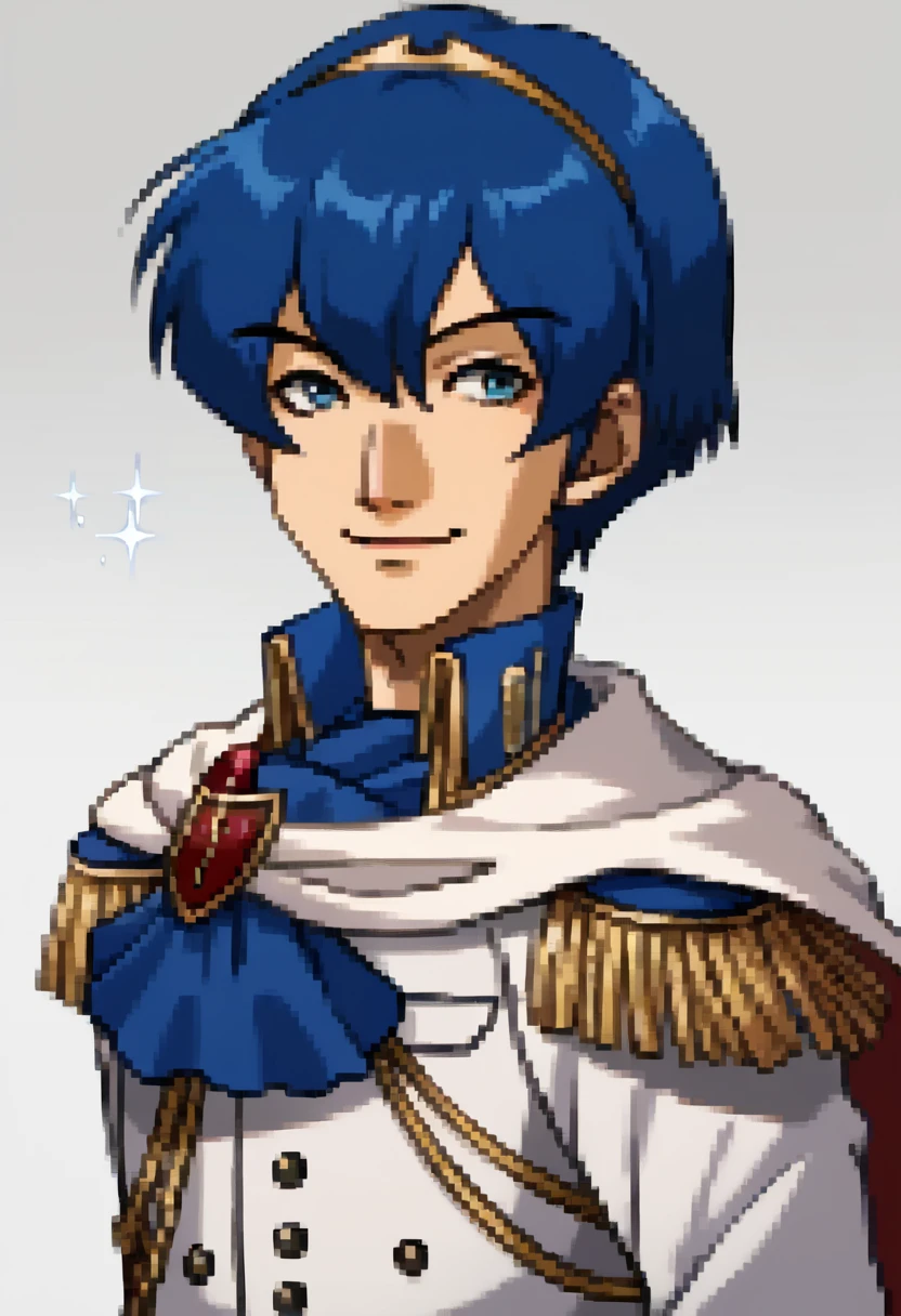 marthwed, blue hair, blue eyes, short hair, tiara, white suit, white gloves, epaulettes, formal, white cape,