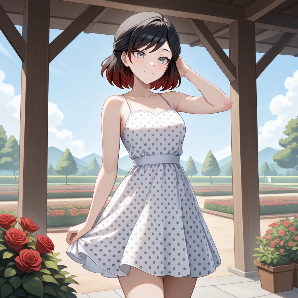 Triggers: SummerRose_RWBY (Optional: silver eyes, black hair, red layered dress, corset, black stockings)