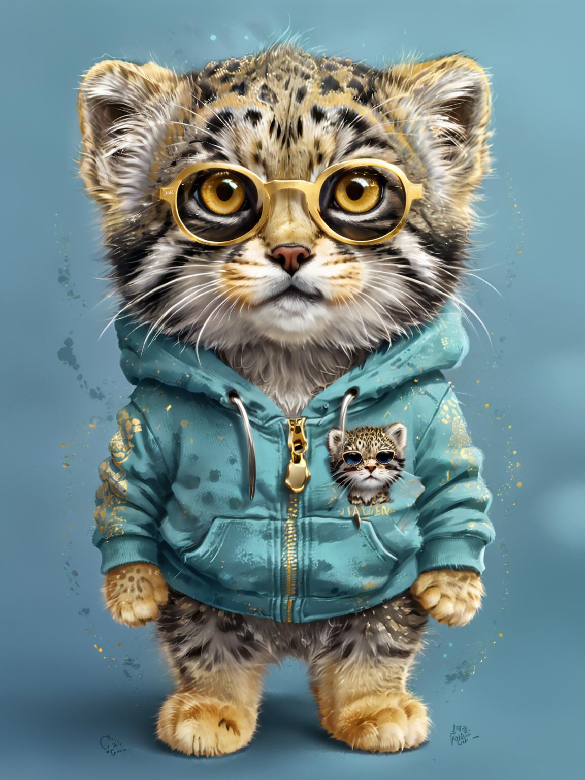 2.在正则化集中添加了1006张精选的全球各地兔狲个体照片。训练采用自然语言+标签混合打标方式,测试了不同触发词的触发效果,以追求狲思邈训练集与其他兔狲正则化集之间能恰当的区分和关联。尽量做到避免污染个体样貌同时,借助正则化集强化毛发细节,并泛化背景环境与表情姿态。