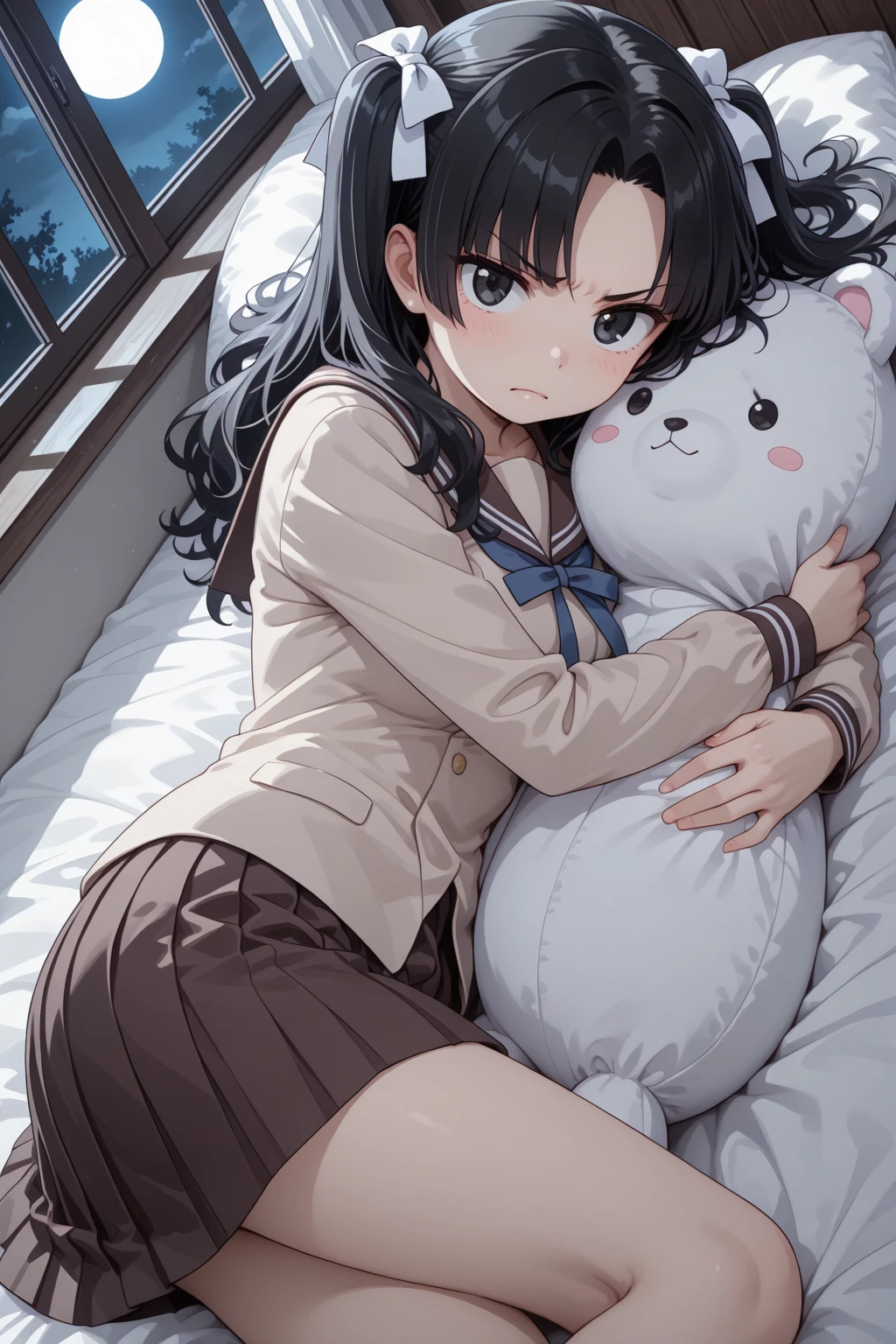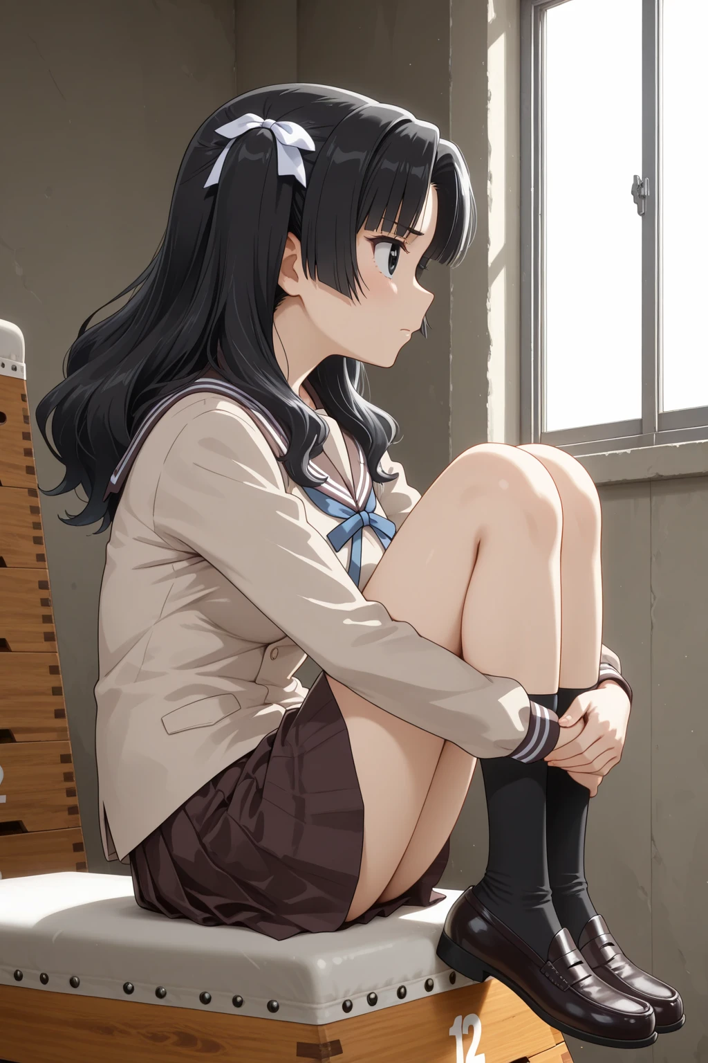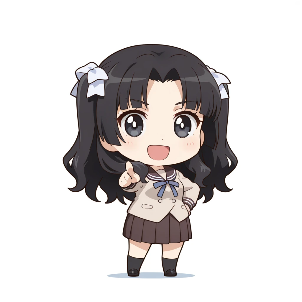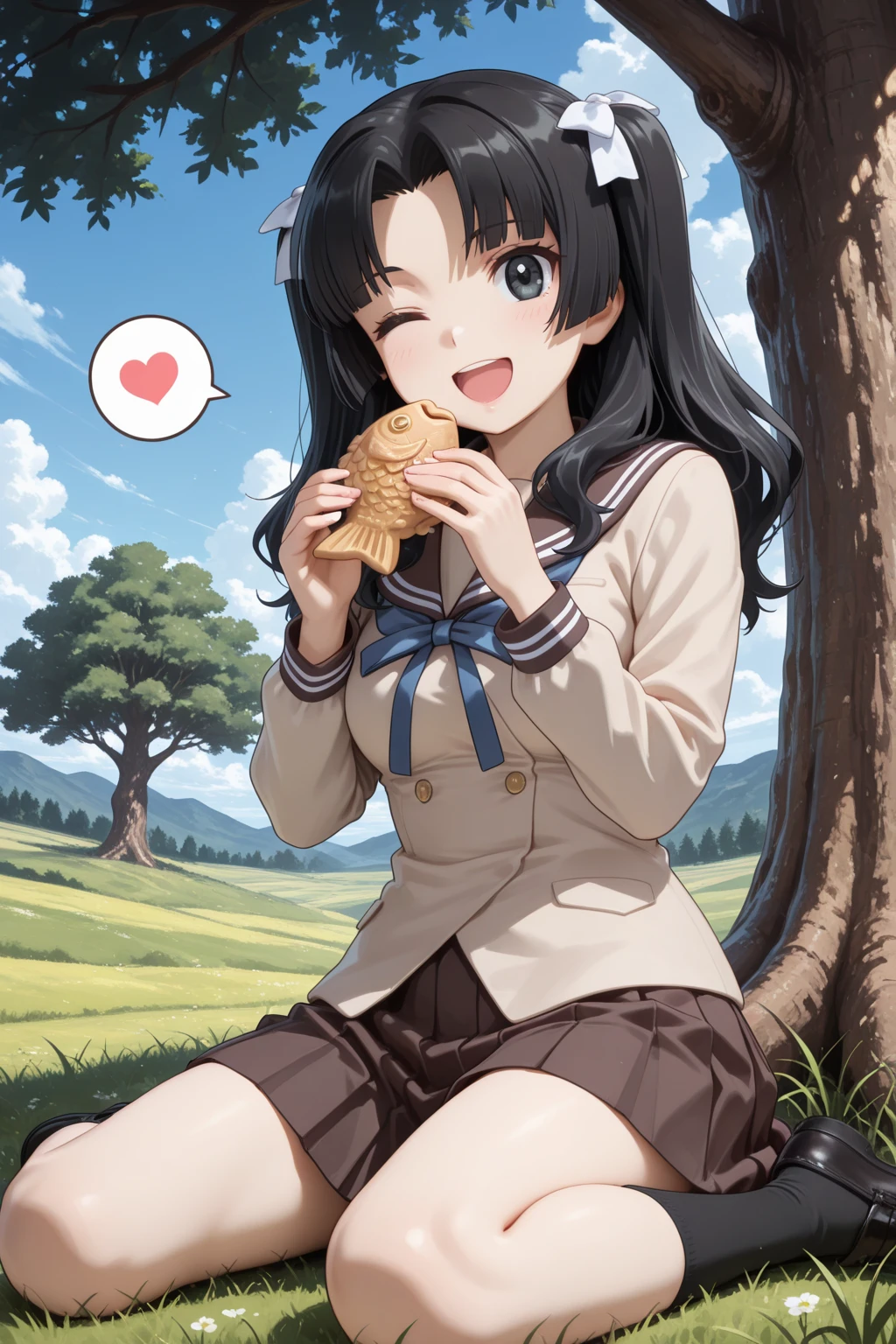 Trigger word: Fuyune, black hair, long hair, two side up, white hair ribbon, parted bangs, black eyes, school uniform, serafuku, brown shirt, long sleeves, brown sailer collar, blue neck ribbon, brown skirt, pleated skirtAddition: black socks, black loafers