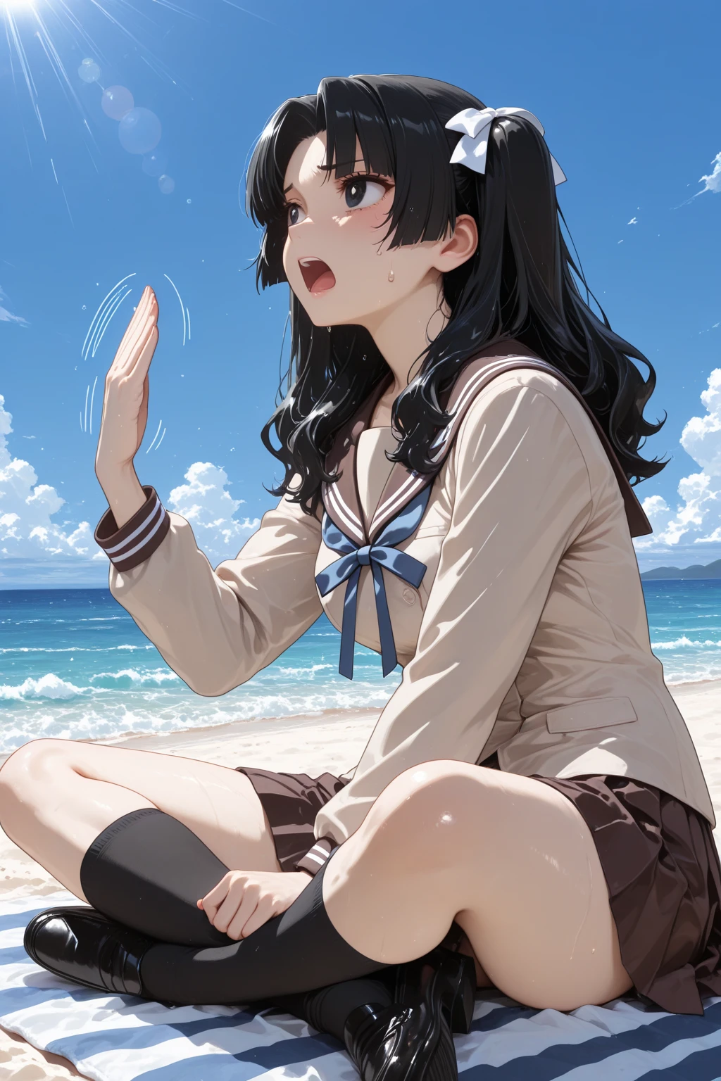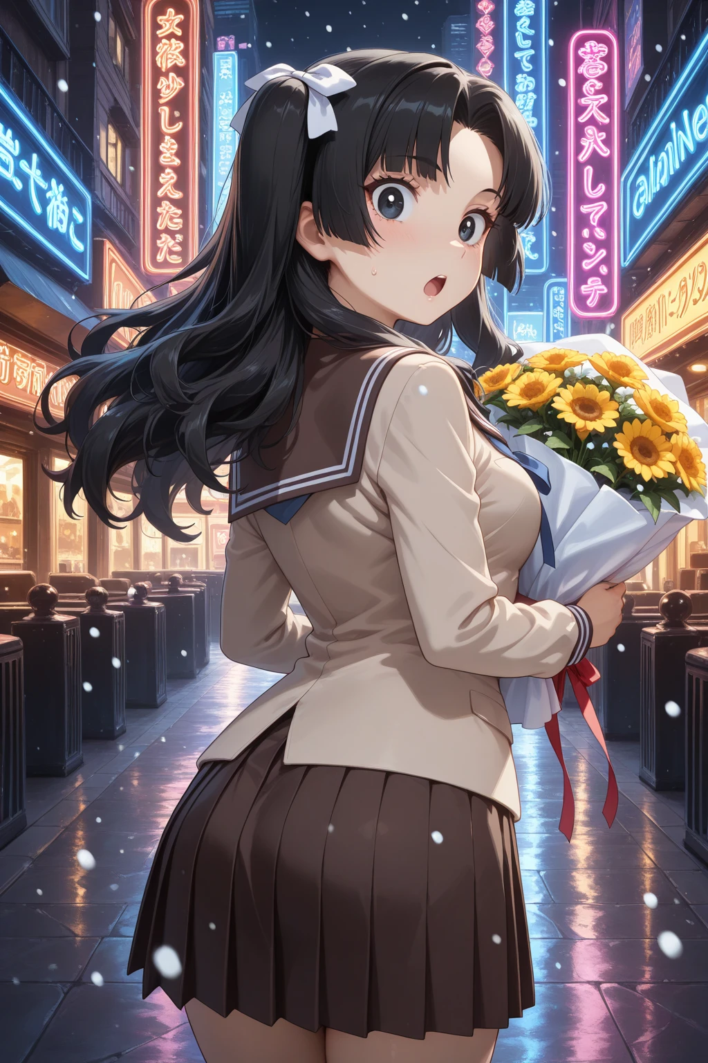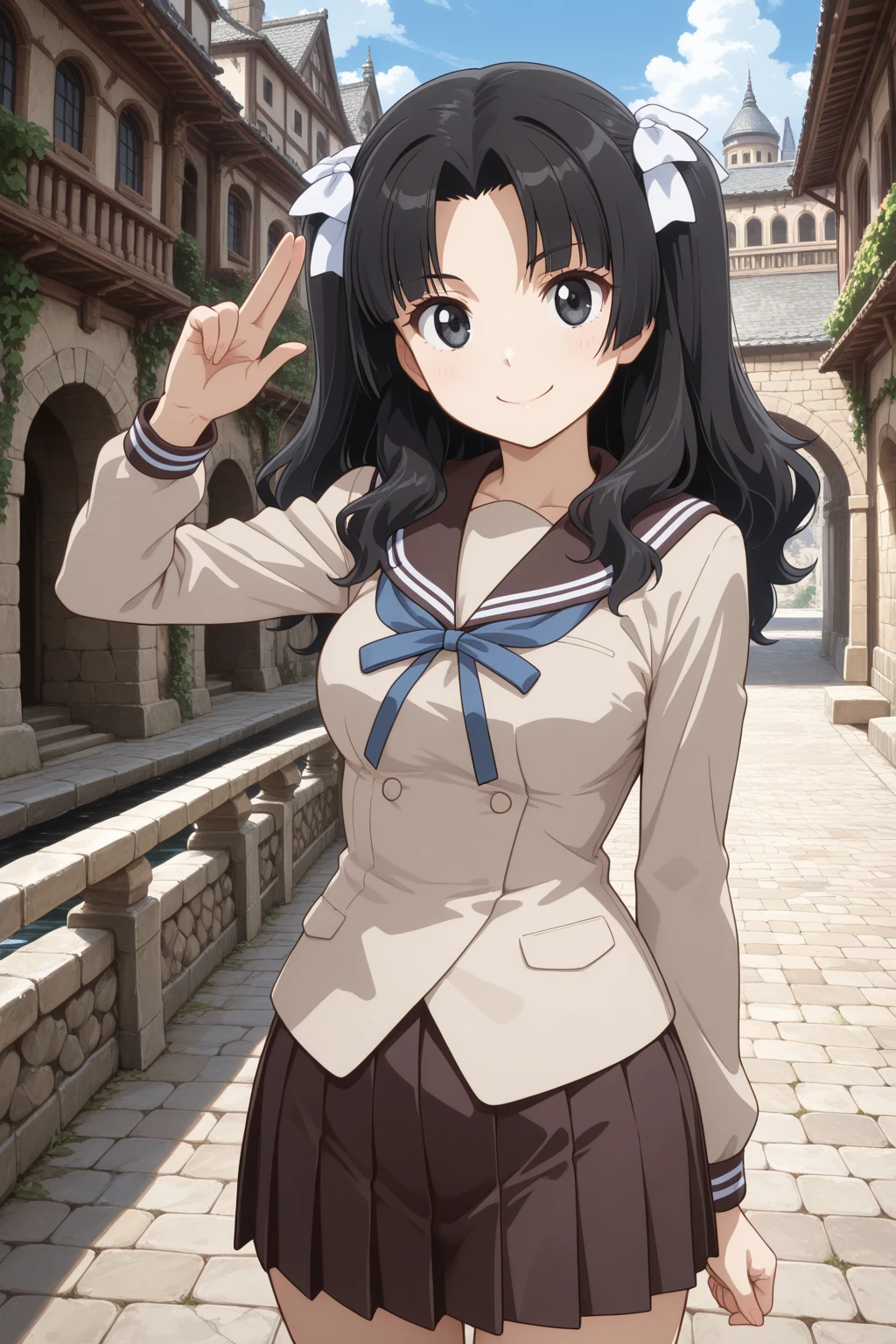 Trigger word: Fuyune, black hair, long hair, two side up, white hair ribbon, parted bangs, black eyes, school uniform, serafuku, brown shirt, long sleeves, brown sailer collar, blue neck ribbon, brown skirt, pleated skirtAddition: black socks, black loafers