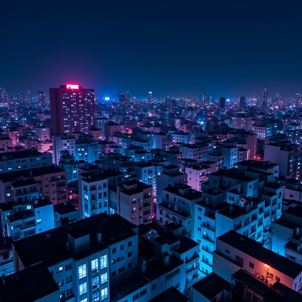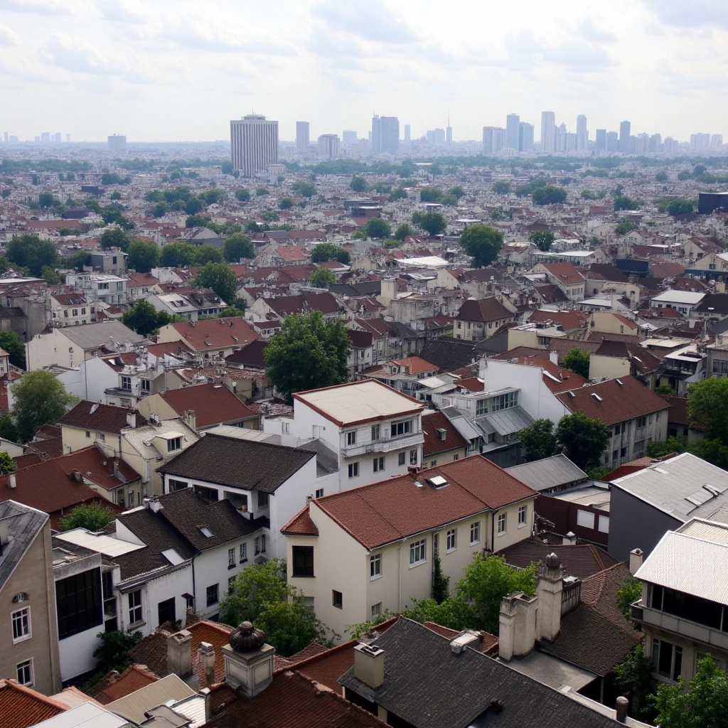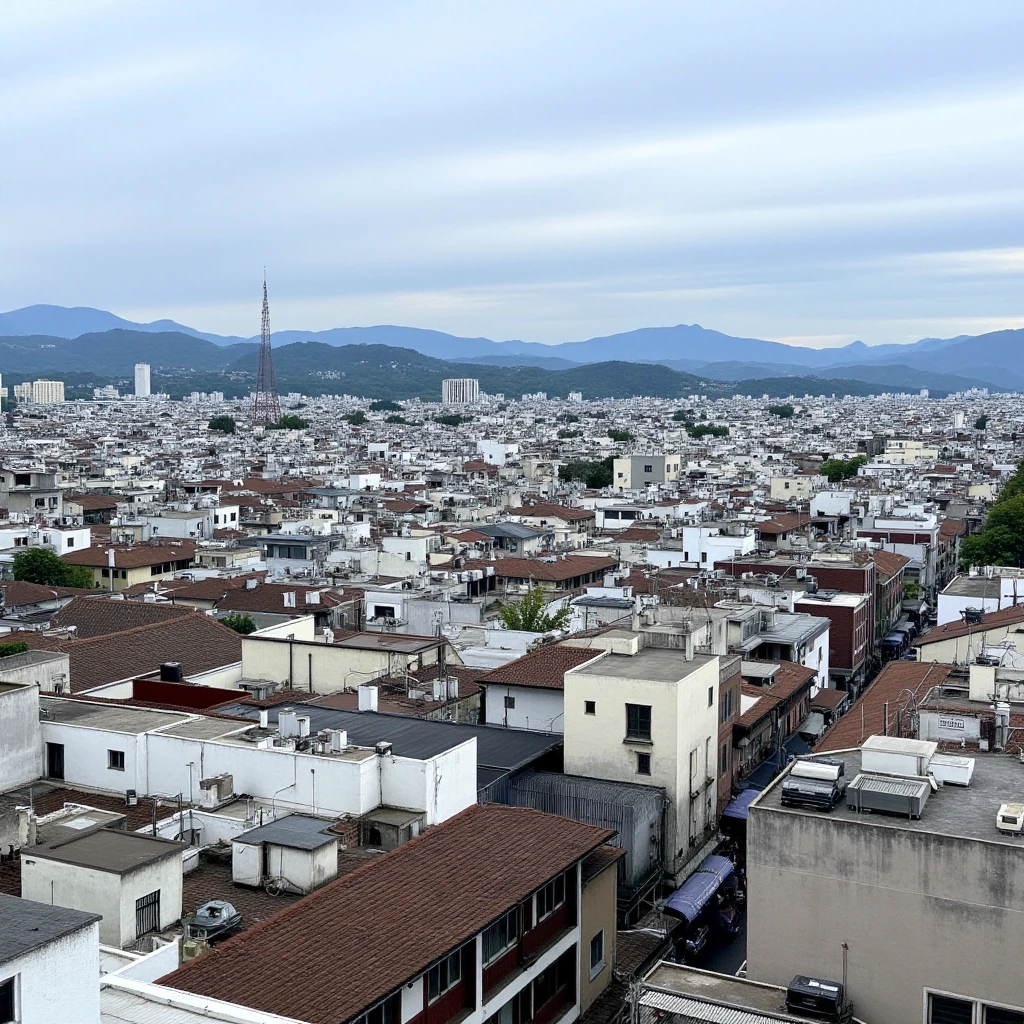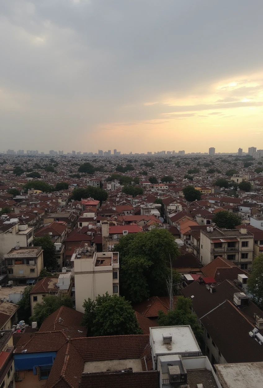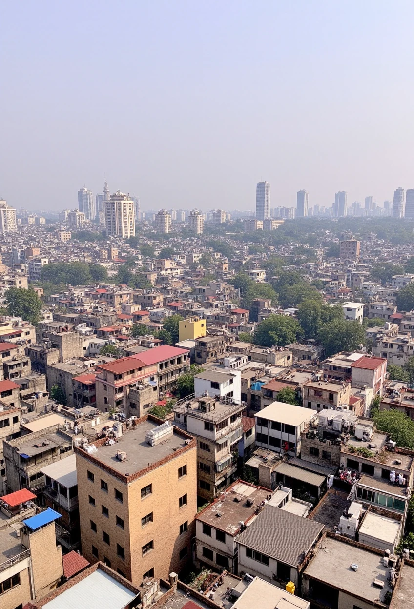 urjungle photograph of sprawling XX city rooftops and buildings seen YY taken from a nearby rooftop.