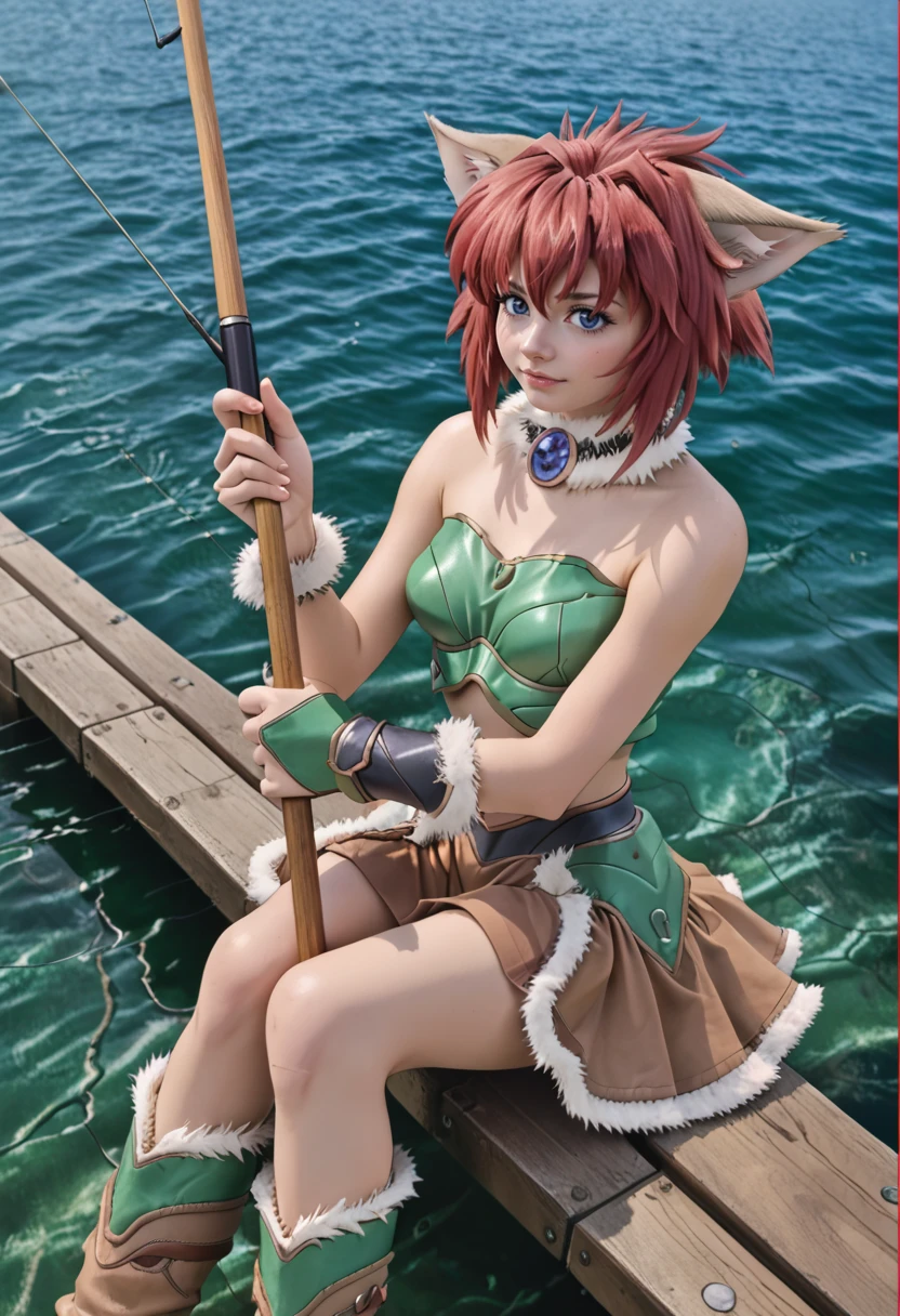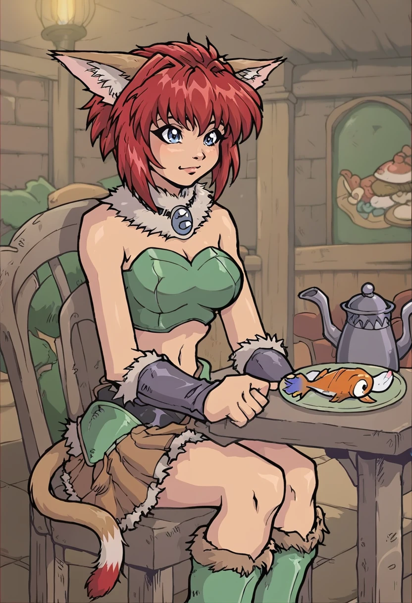 MarinBraveSoul, red hair, blue eyes, cat ears, cat tail