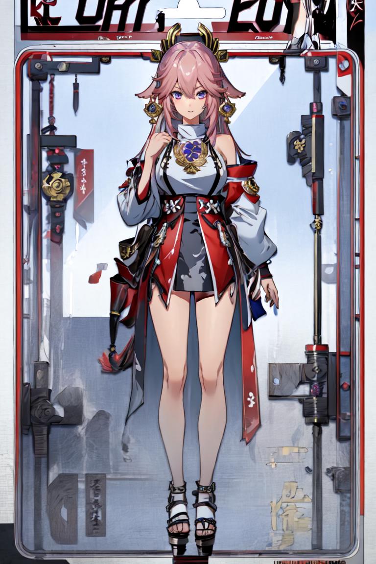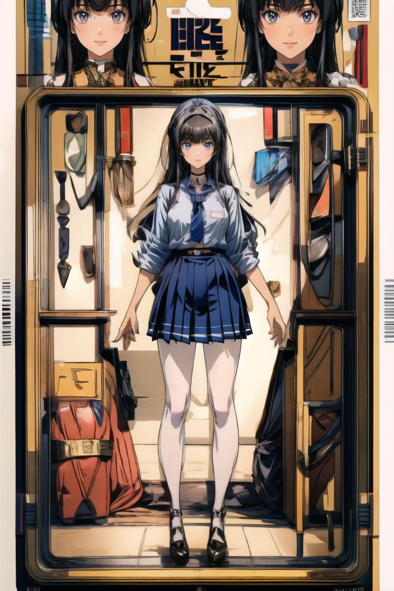 prompt a small portrait on right corner,bar_code,qr code, will make the picture more like a packed toy.Without this prompt and using lower weight will more like an item display