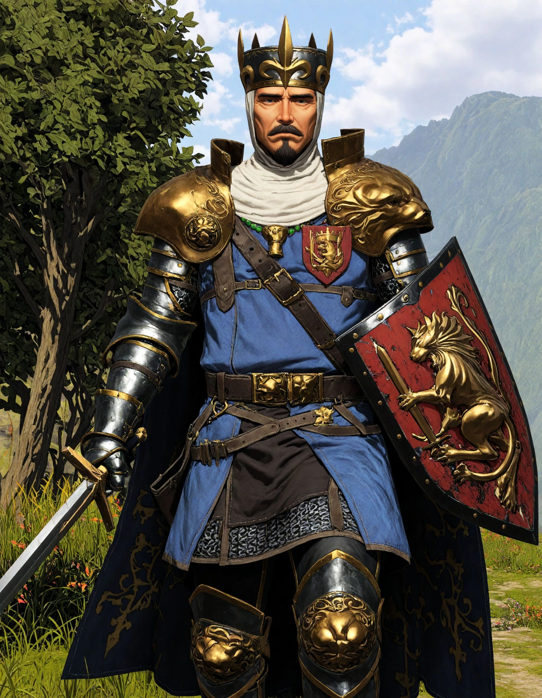 LouenLeoncoeur, armor, sword,Recommended Tags (Mounted on Beaquis):