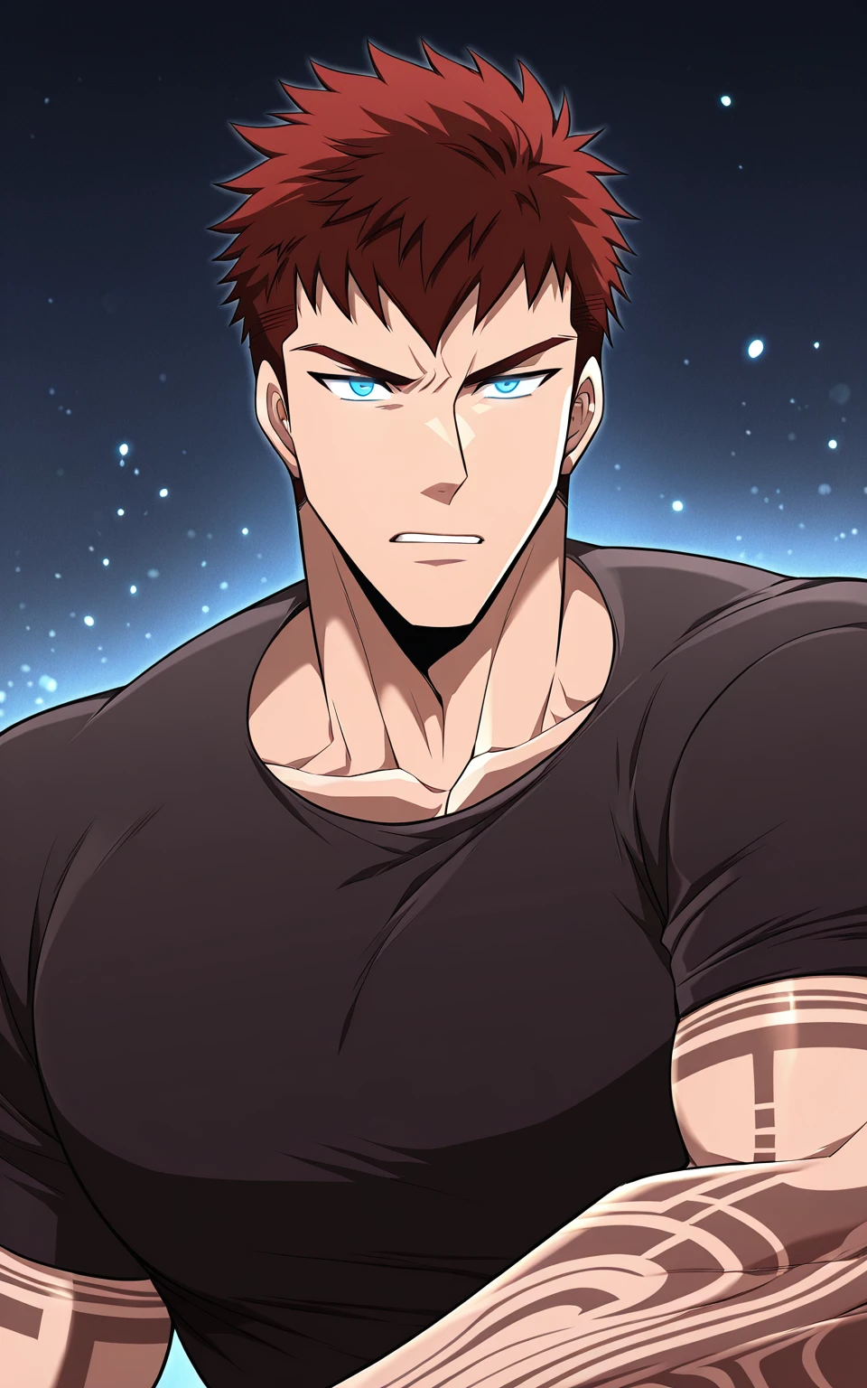 Bjorn, 1boy, short hair, spiky hair, brown hair, muscular, tattoos,