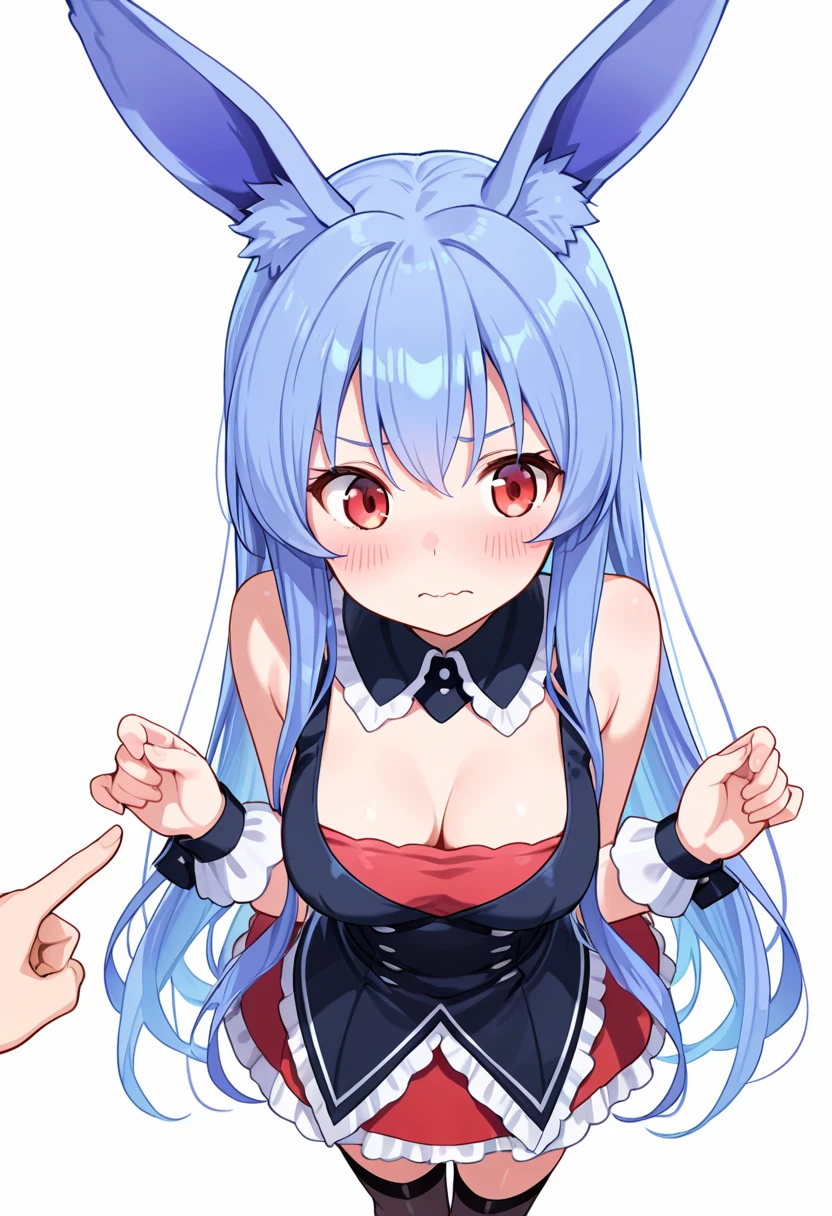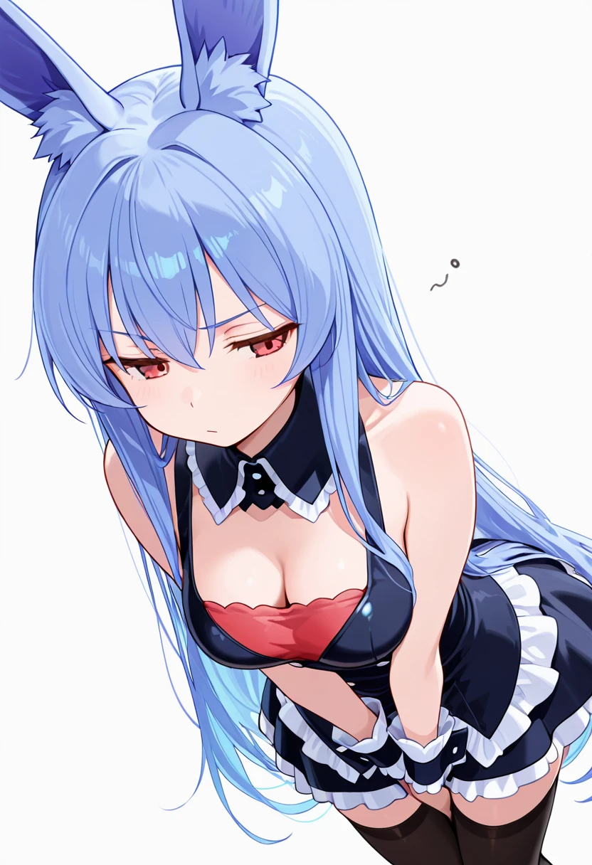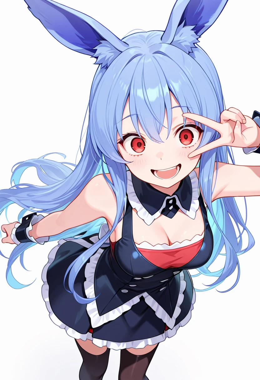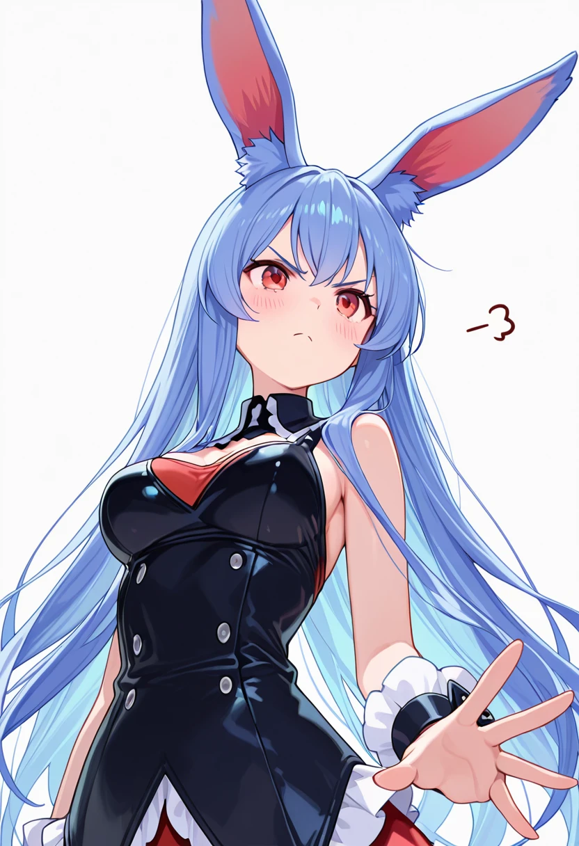 1girl, long hair,rabbit ears, red eyes, medium breasts, very long hair, rabbit girl, animal ear fluff,blue hair,🧬Pink Version
