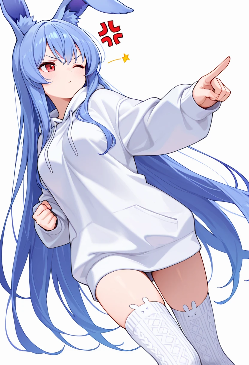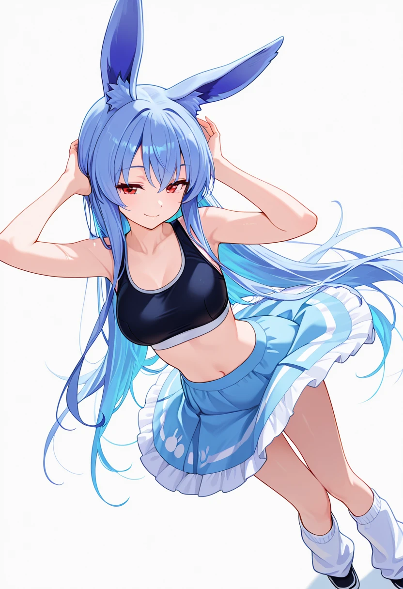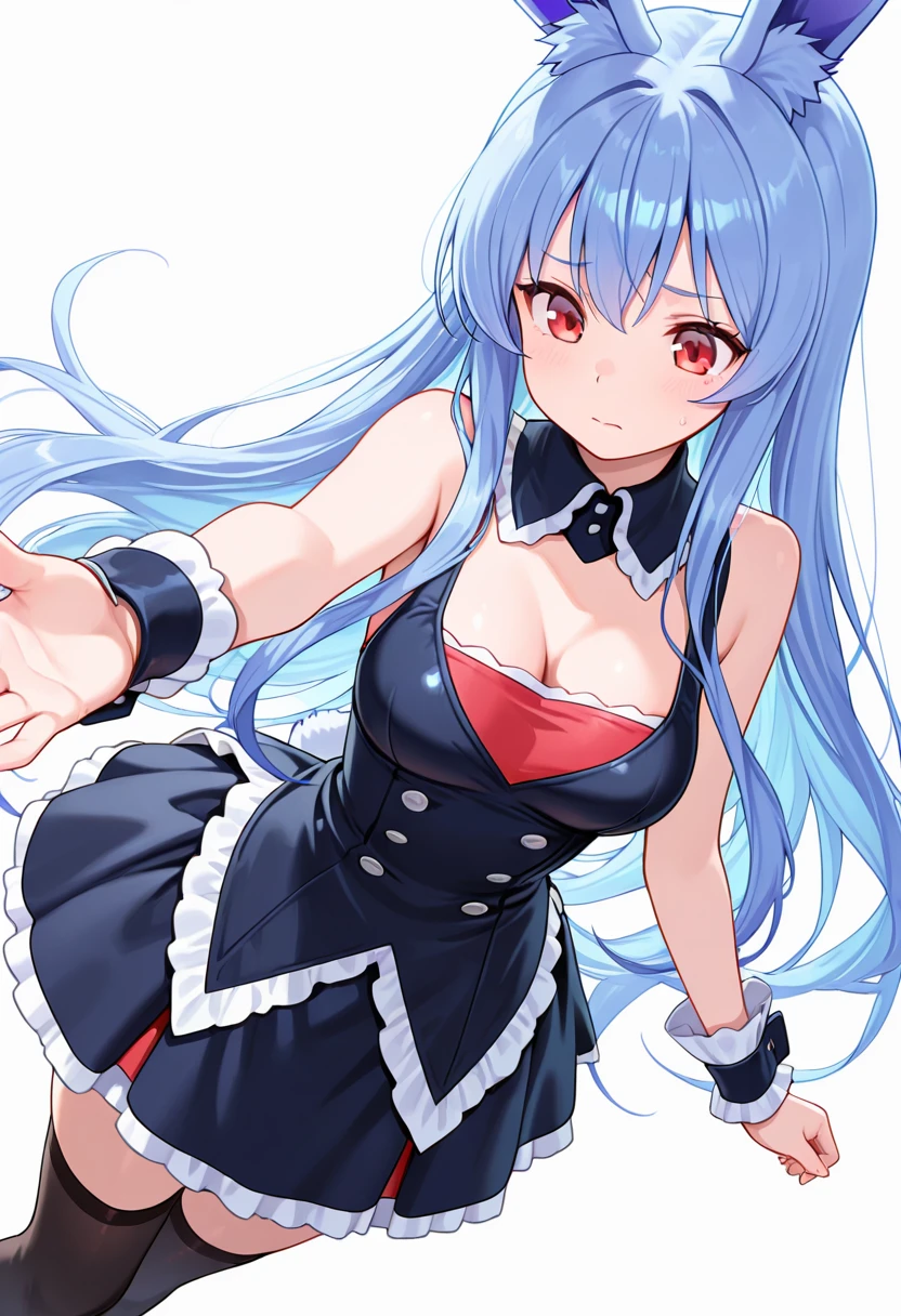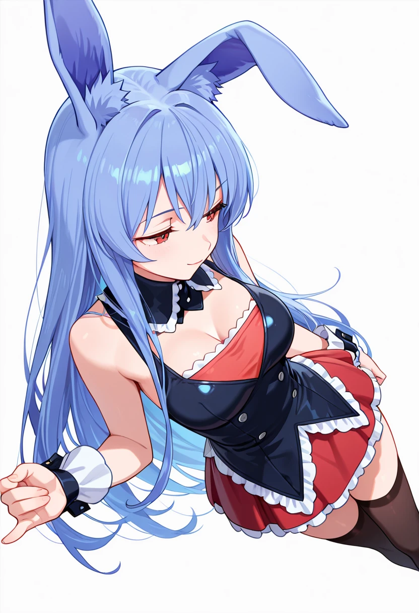 1girl, long hair,rabbit ears, red eyes, medium breasts, very long hair, rabbit girl, animal ear fluff,blue hair,🧬Pink Version