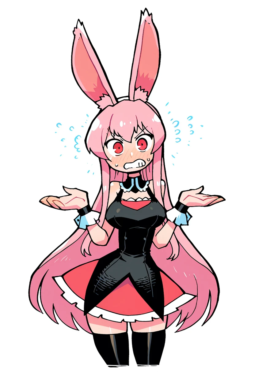 1girl, long hair,rabbit ears, red eyes, medium breasts, very long hair, rabbit girl, animal ear fluff,pink hair,👗Signature Outfit