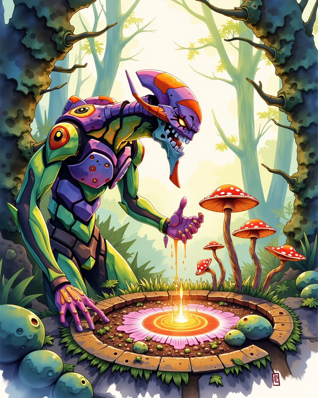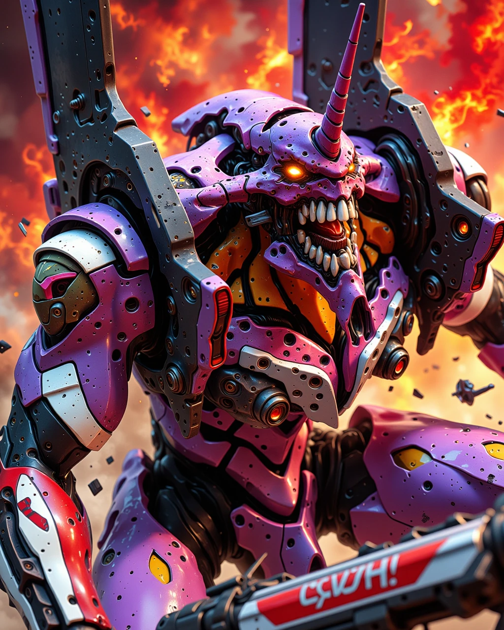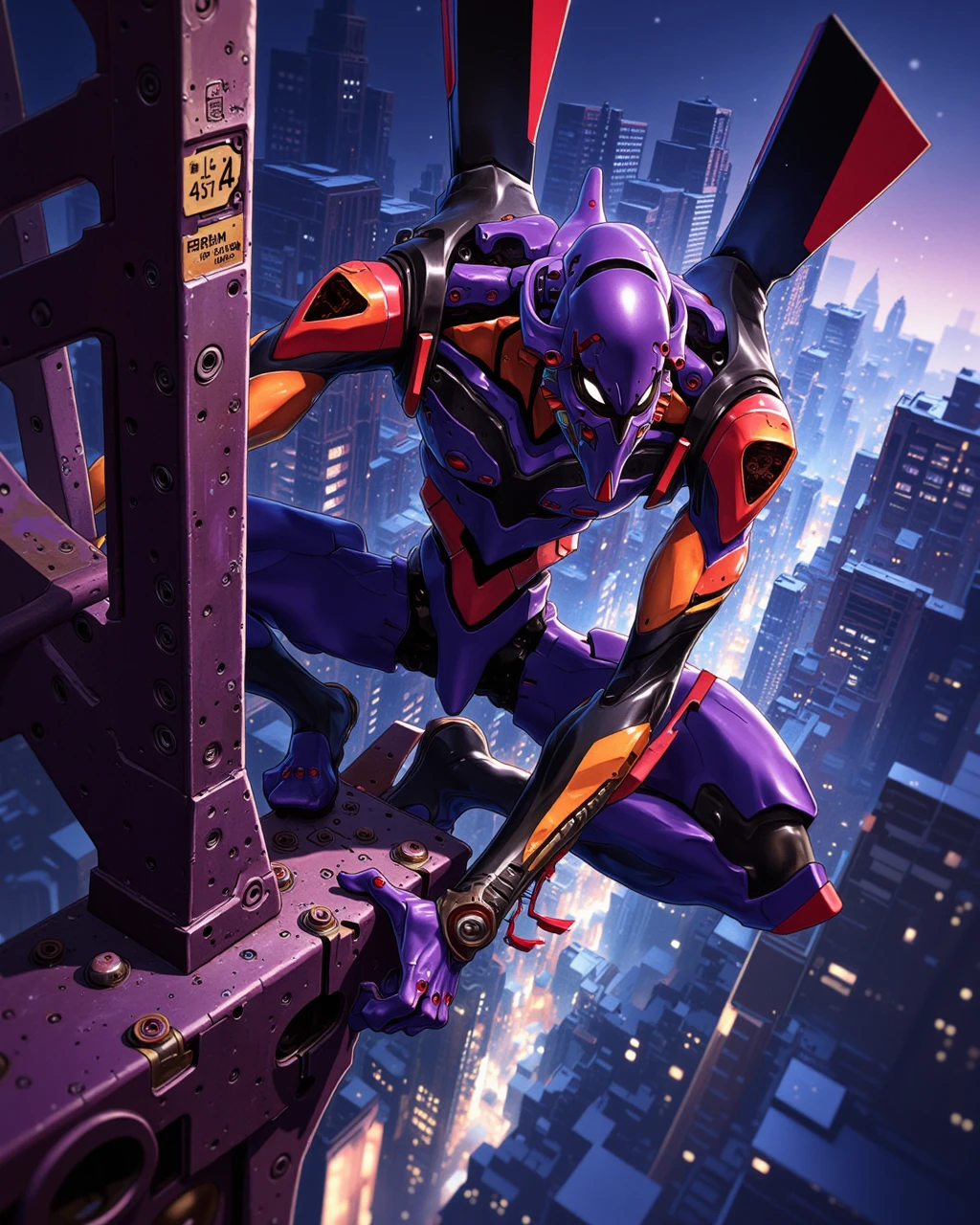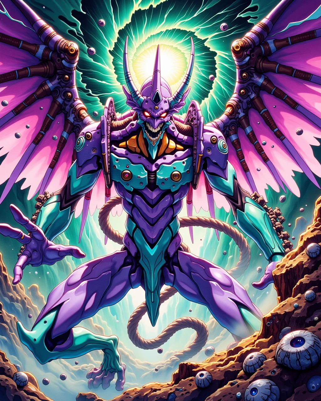 Note: This is actually not a Neon Genesis Evangelion LoRA; the dataset is based on painterly images of EVA style mecha from NGE, but the LoRA doesn't know that. There is no mention of NGE or EVA in the captions, which gives you the freedom to use this for anything; throw random prompts at it and see what happens. Or just make EVA units.