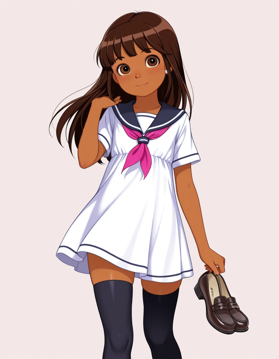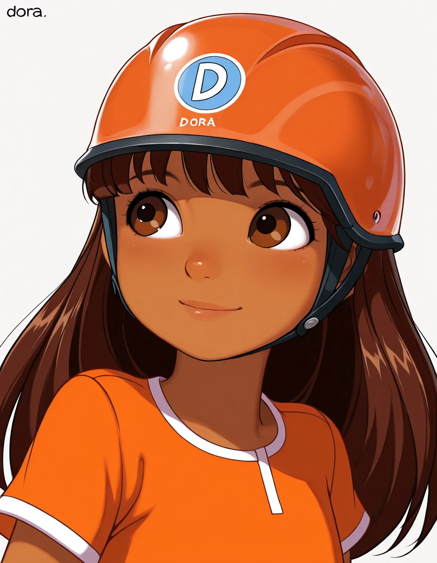 Dora, 1girl, brown hair, long hair, brown eyes, brown skin,