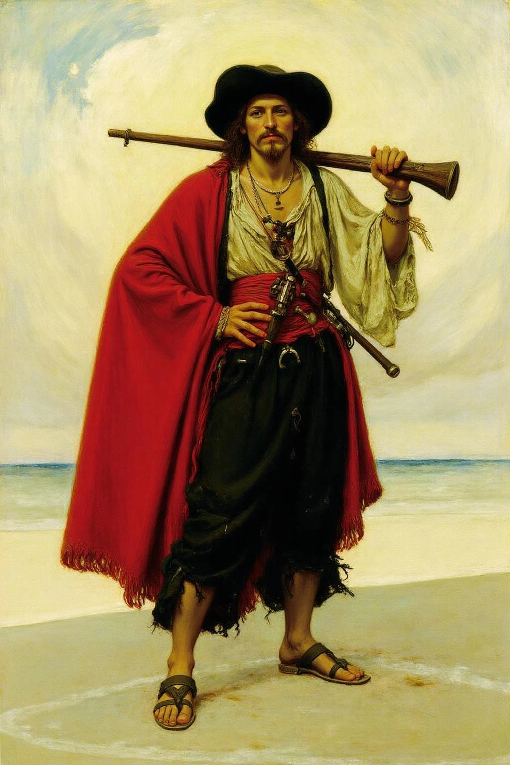 His pirate imagery (tricorn hats, flowing coats, and dramatic poses) still influences film, books, and pop culture today.