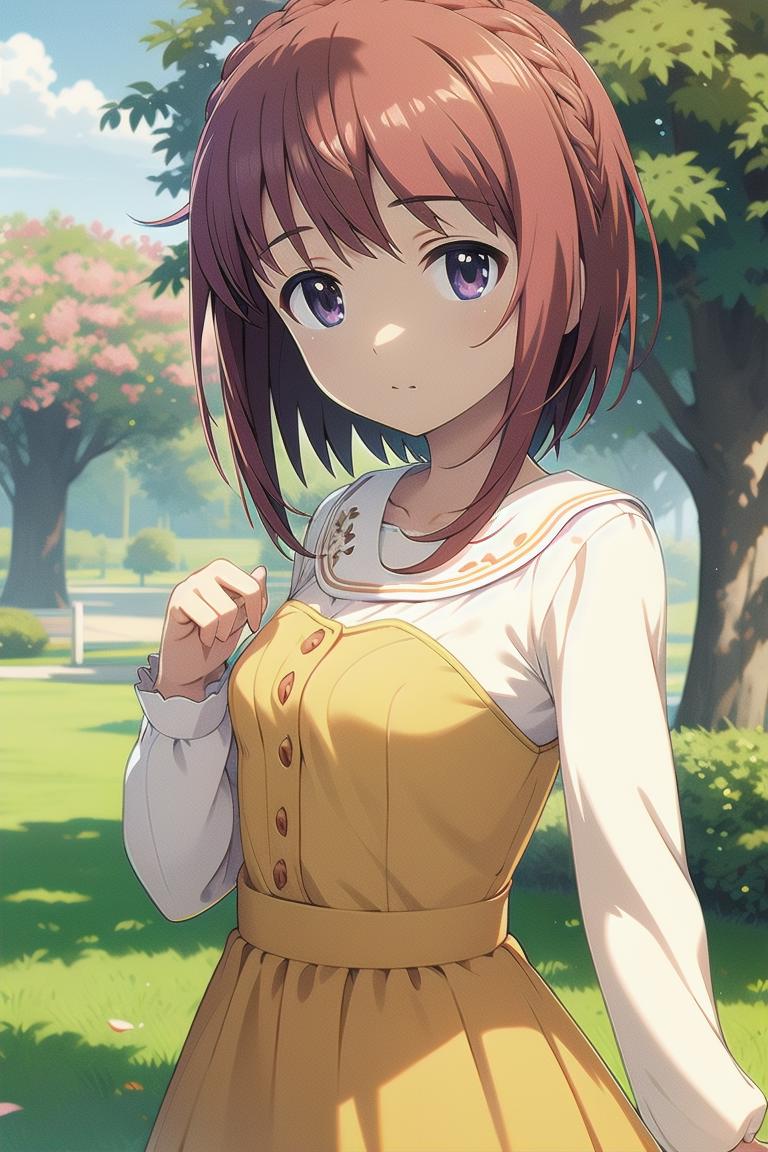 aika, braid, small breasts, (yellow swimsuit), (yellow one-piece swimsuit), white sailor collar,