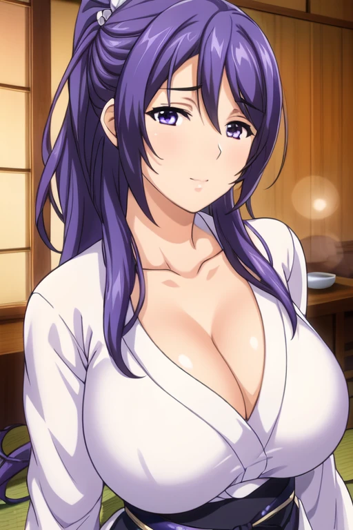purple_hair, long_hair, purple_Eyes,hair_between_eyes,ponytail,braid,Bangs,