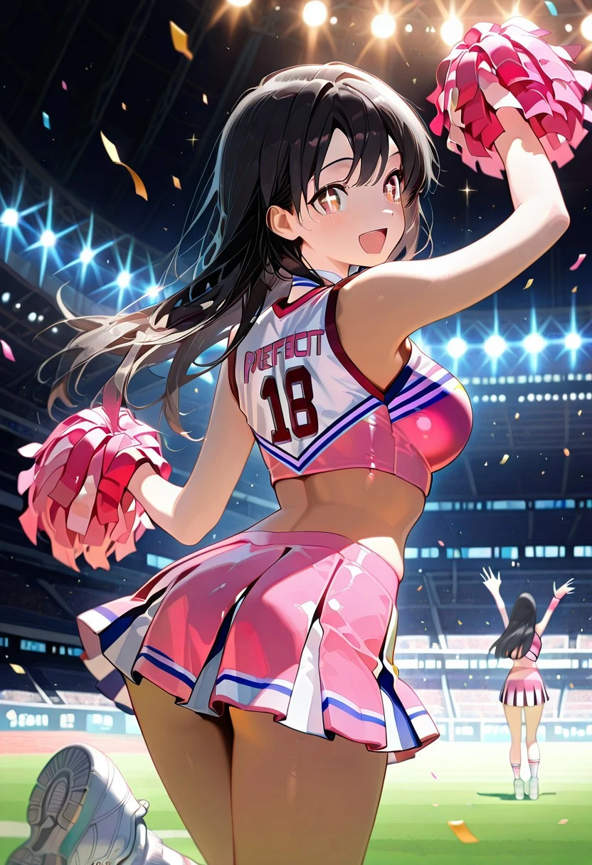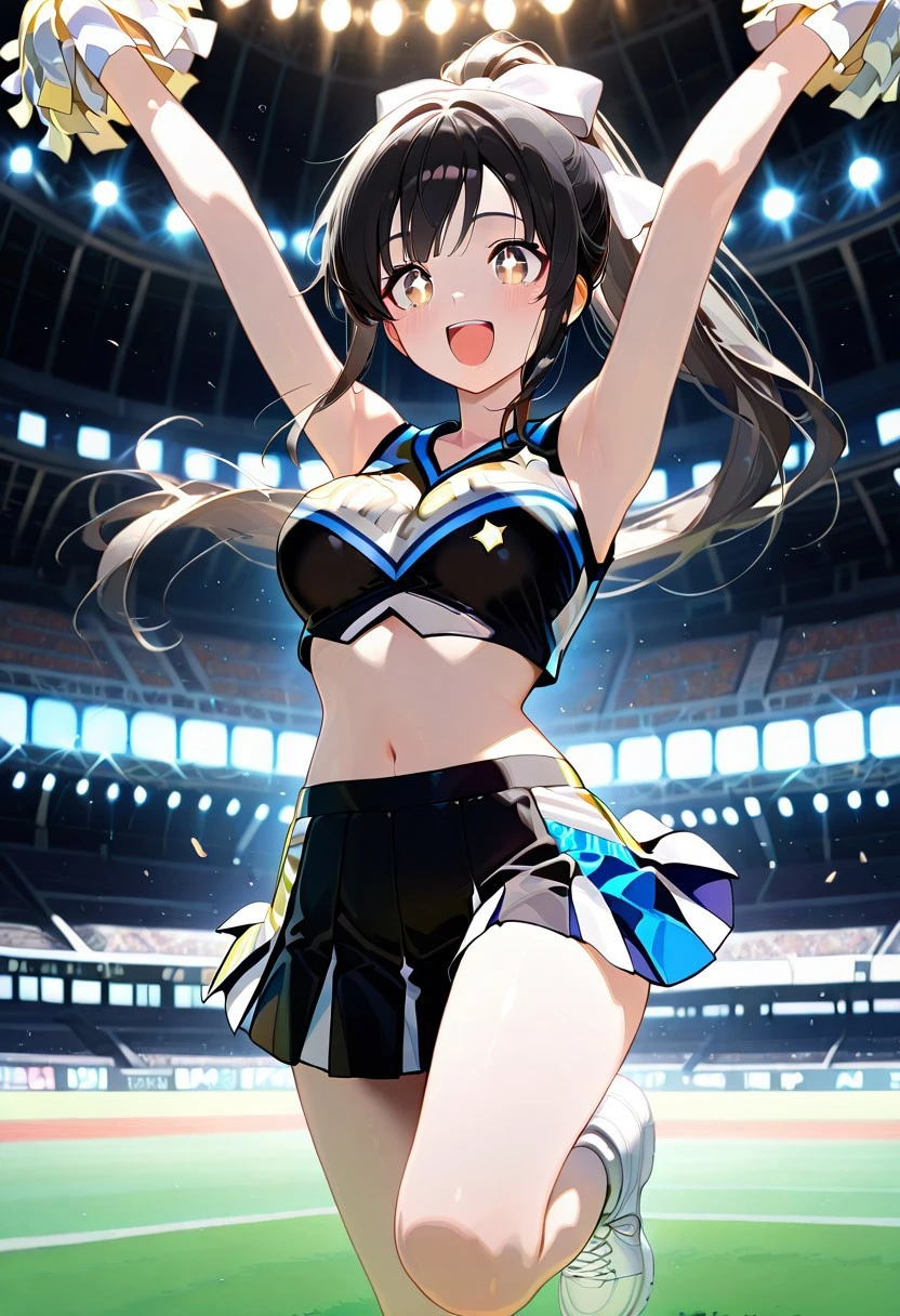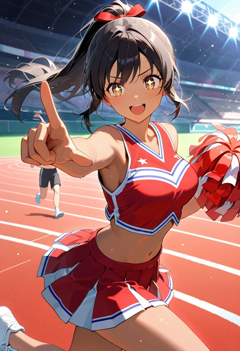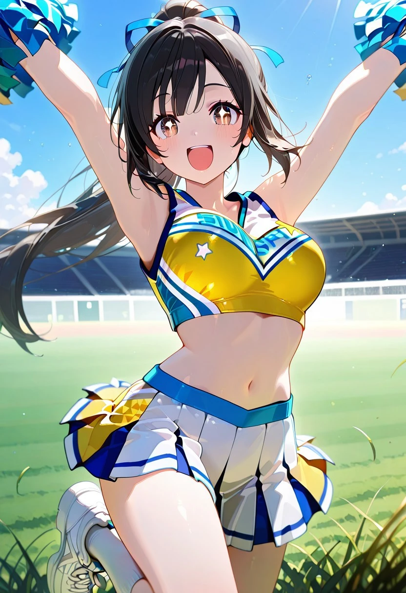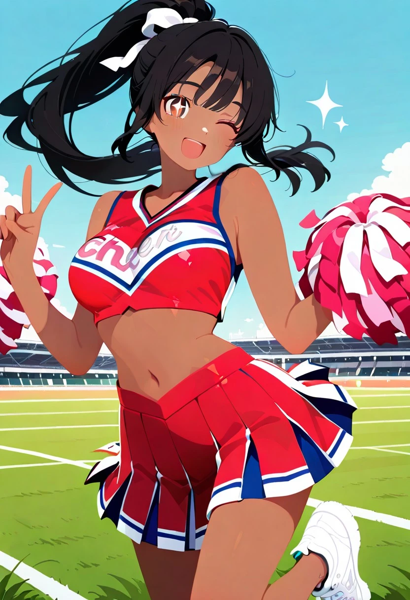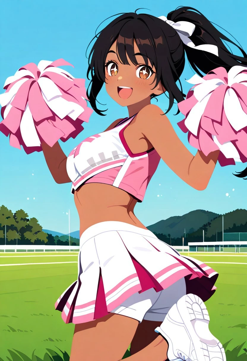 Cheerleading Uniform, Sleeveless Cheer Top, Pleated Cheer Skirt, Sneakers, Pompoms