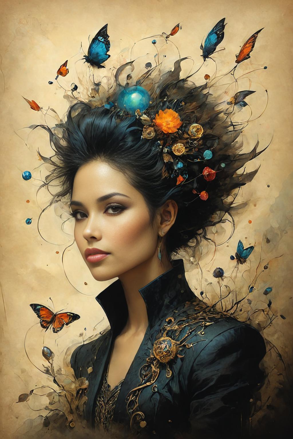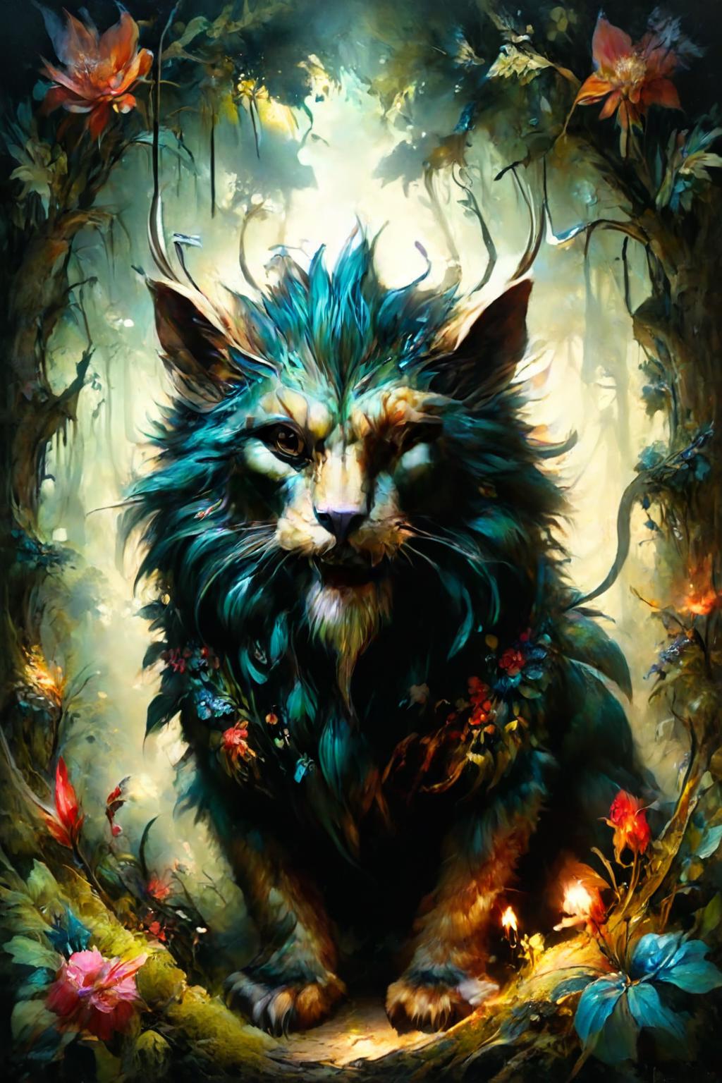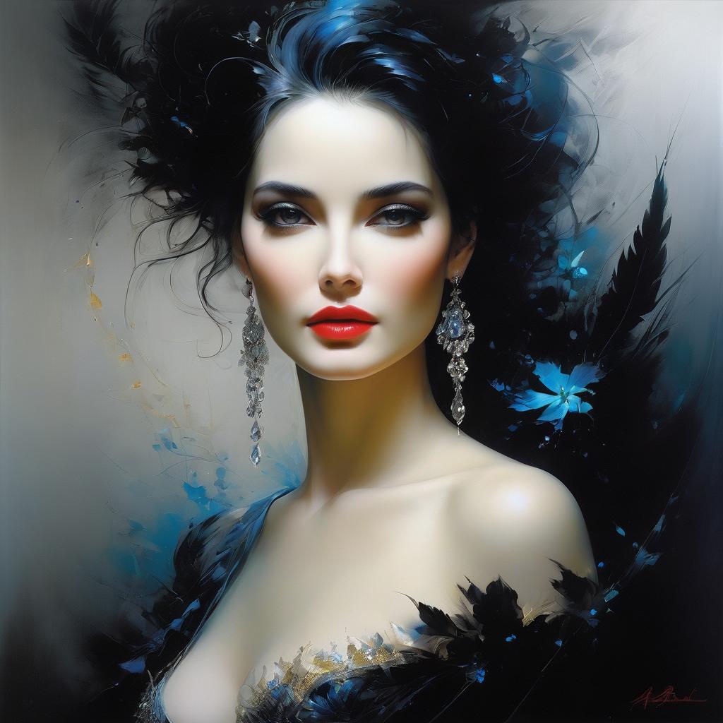 This style combines fluid dynamism with sharp detail, characterized by its luminous and soft-focus effects. Bold, contrasting colors blend with a subtle palette to create a vivid yet harmonious composition. The technique merges traditional painting virtues with modern digital art's precision, resulting in a fusion where naturalism meets the fantastical. This style could be seen as a contemporary take on classical themes, imbued with a sense of motion and a touch of the surreal.
