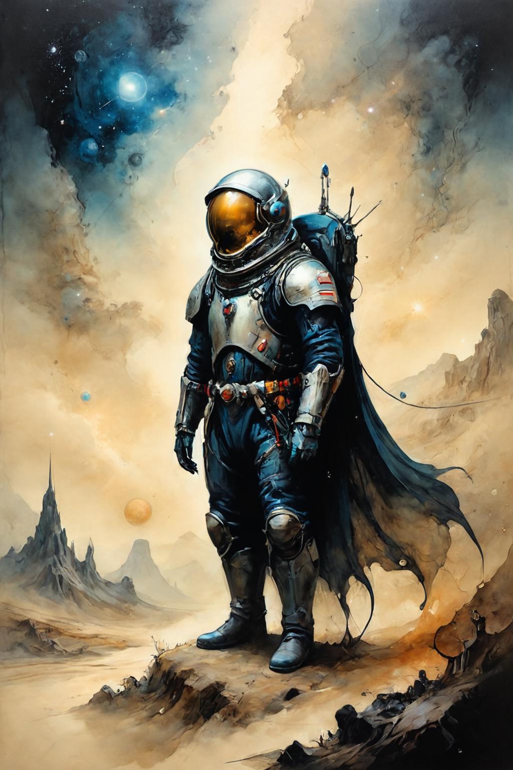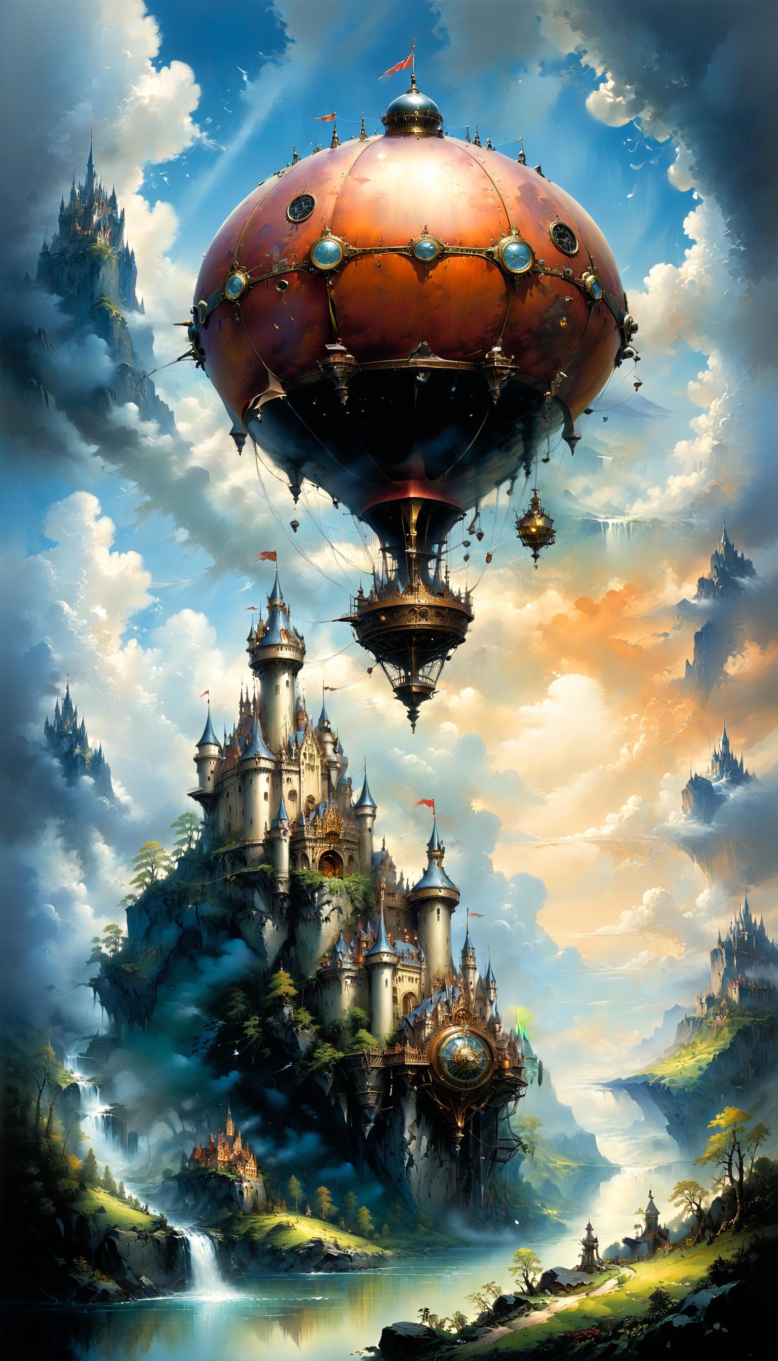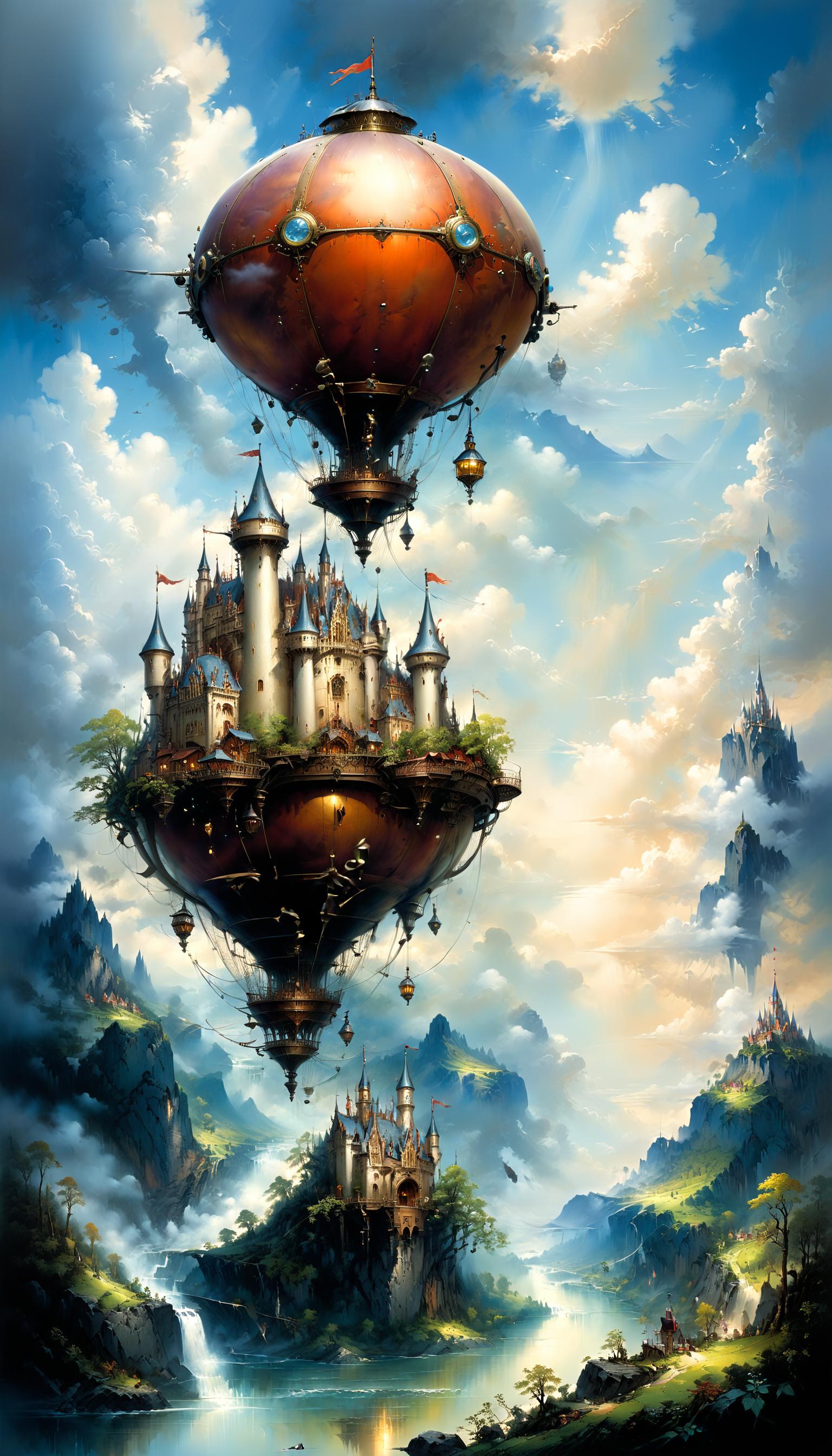 This style combines fluid dynamism with sharp detail, characterized by its luminous and soft-focus effects. Bold, contrasting colors blend with a subtle palette to create a vivid yet harmonious composition. The technique merges traditional painting virtues with modern digital art's precision, resulting in a fusion where naturalism meets the fantastical. This style could be seen as a contemporary take on classical themes, imbued with a sense of motion and a touch of the surreal.