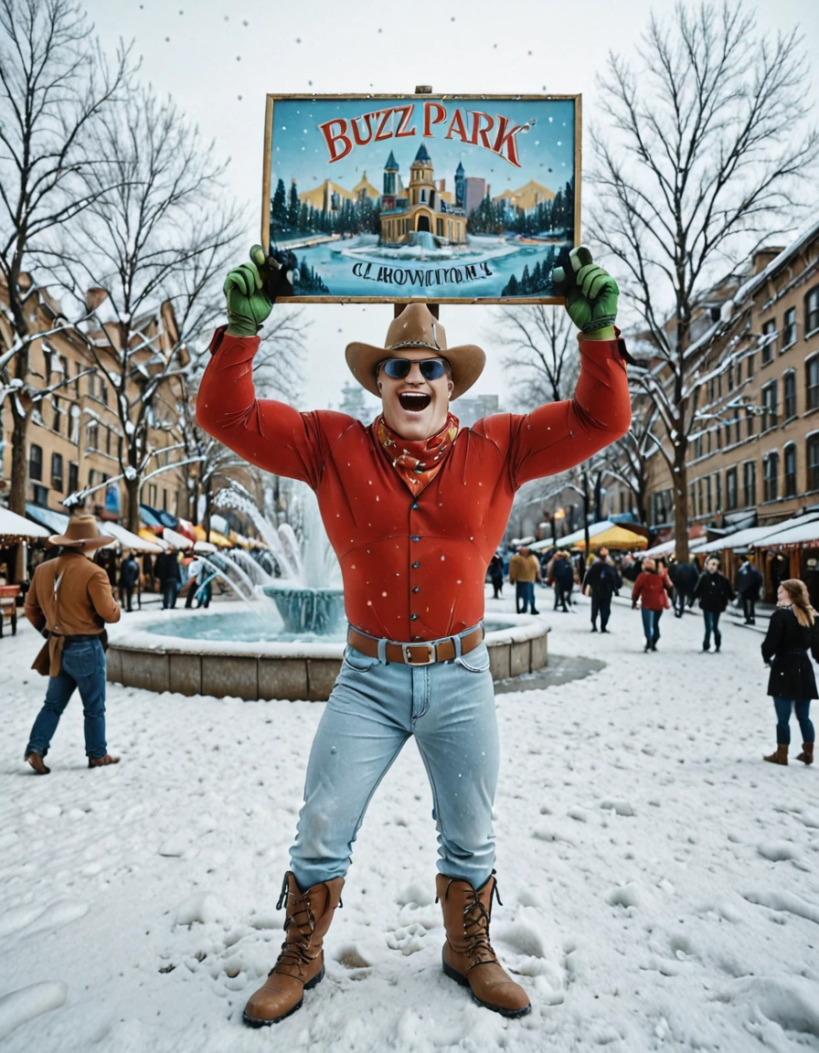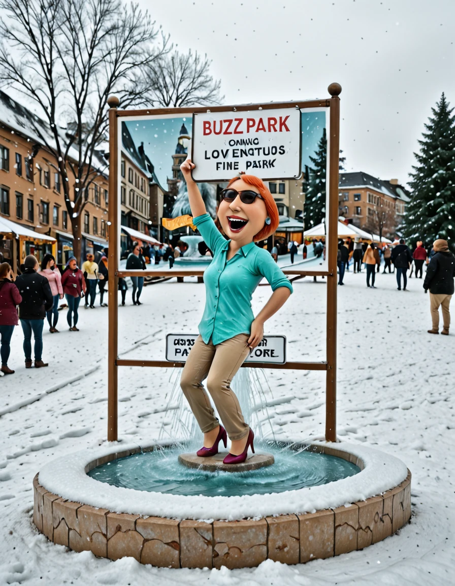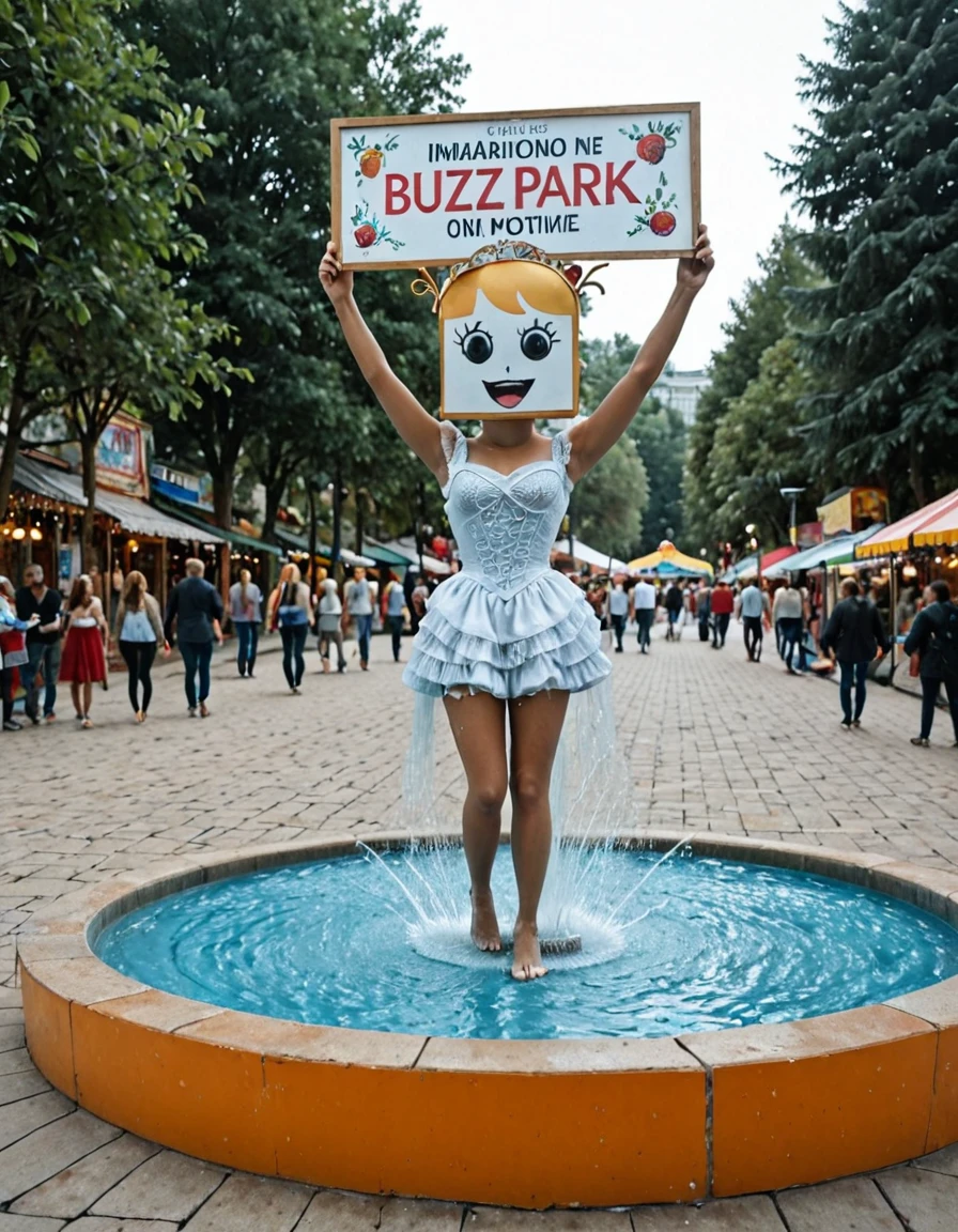 puts your character in a water fountain mostly, but they will be centered around a buzz park sign