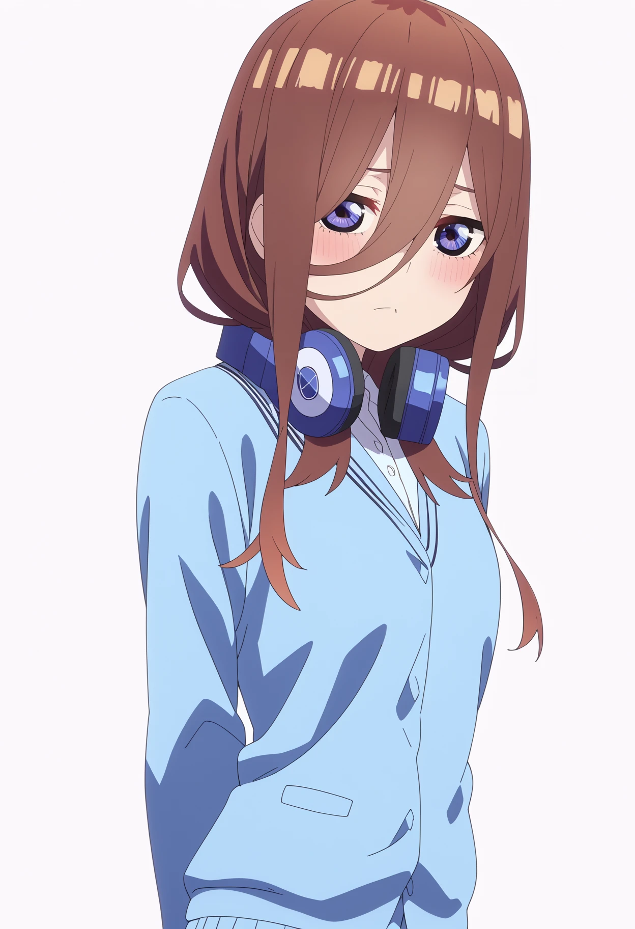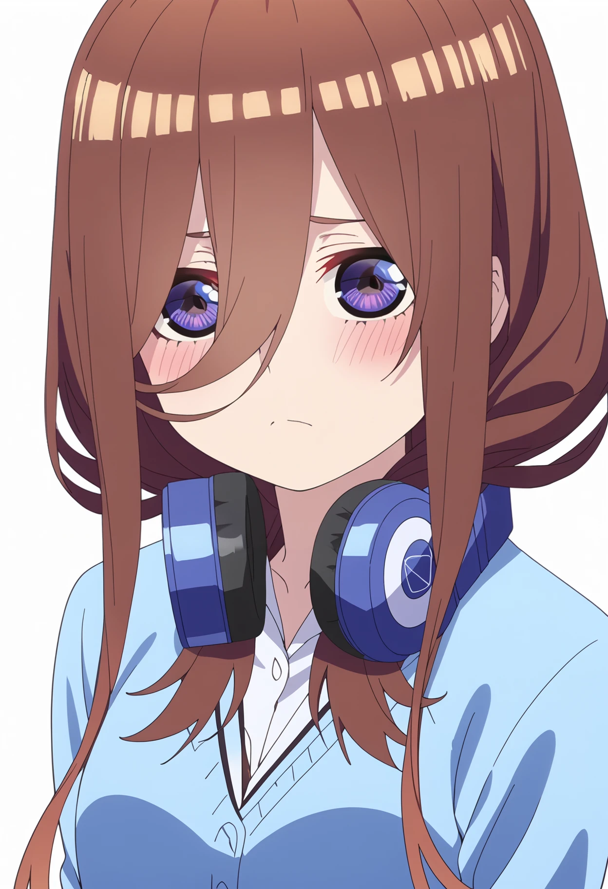 1girl, nakano miku, brown hair, long hair, hair between eyes, blow eyes, bangs