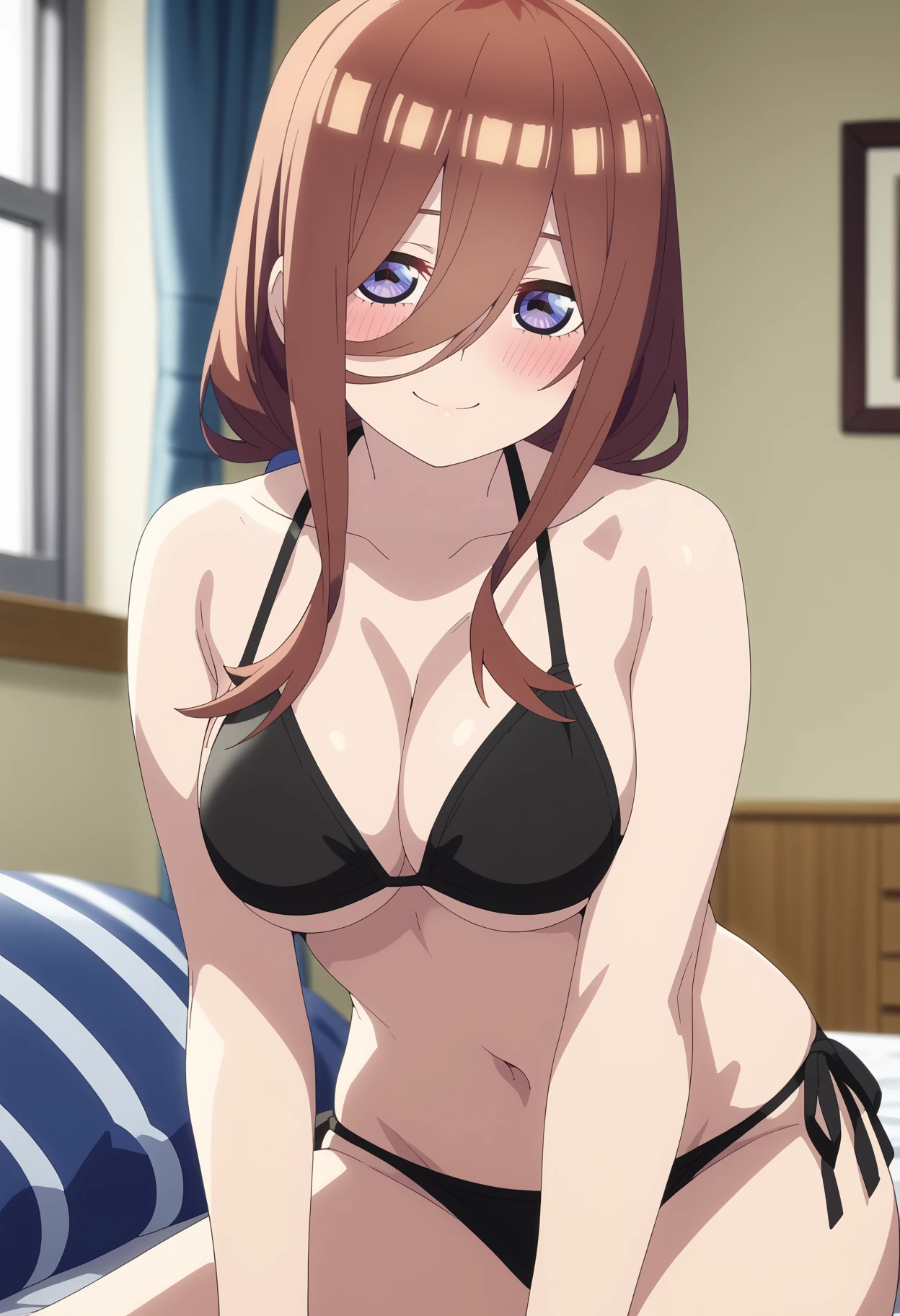 Basic prompts : 1girl, nakano miku, brown hair, long hair, hair between eyes, blow eyes, bangs