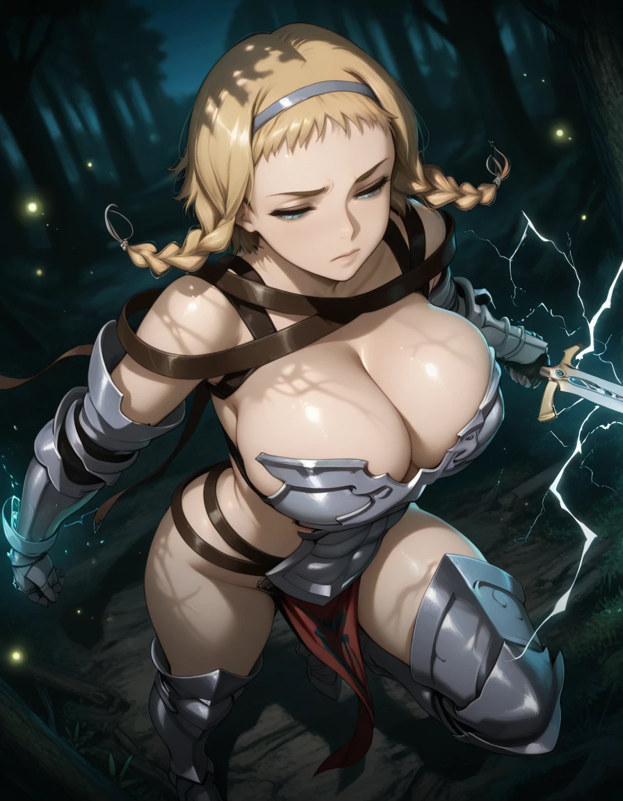armor, revealing clothes, buckle, gauntlet, pelvic curtain, armored boots,