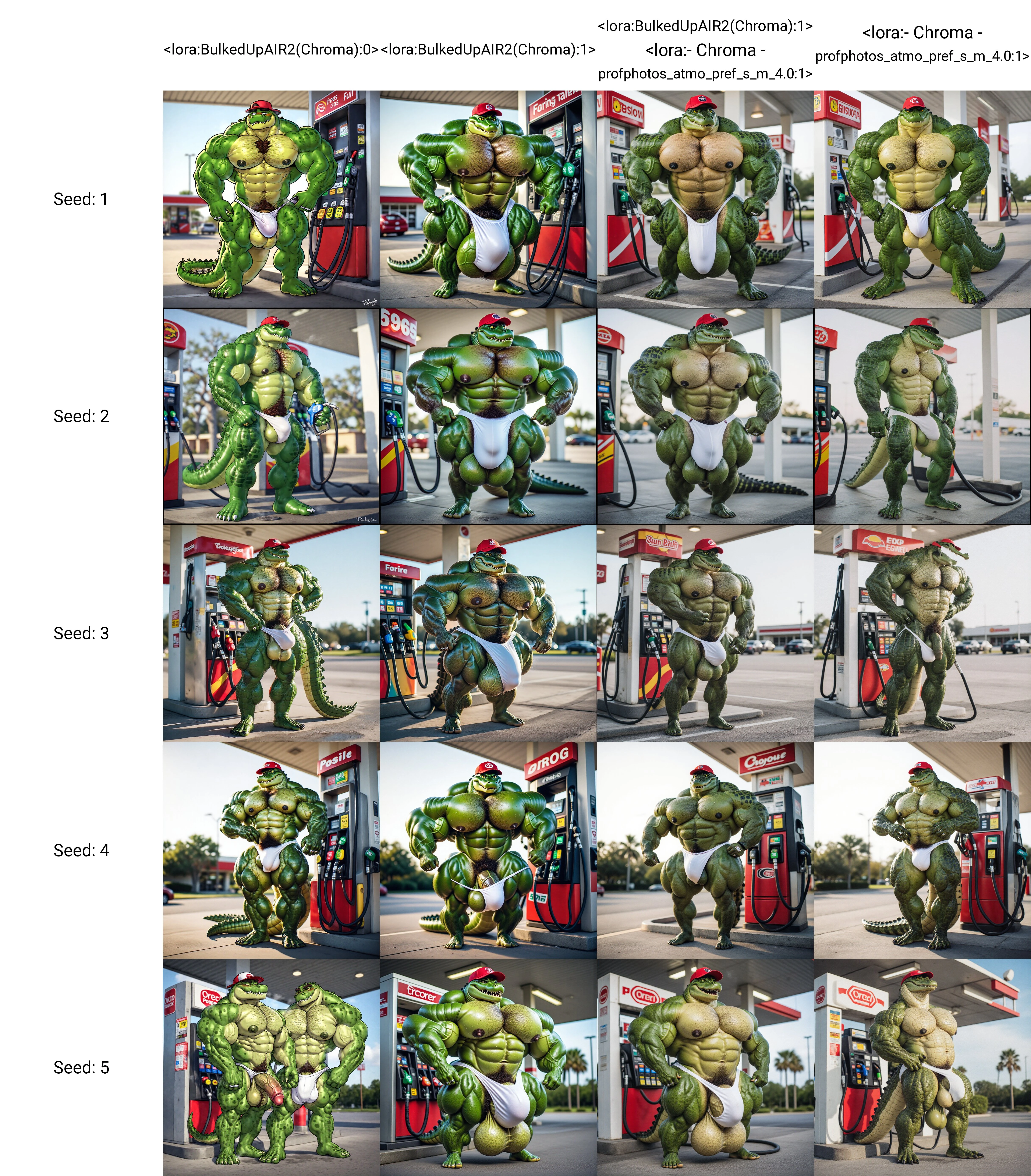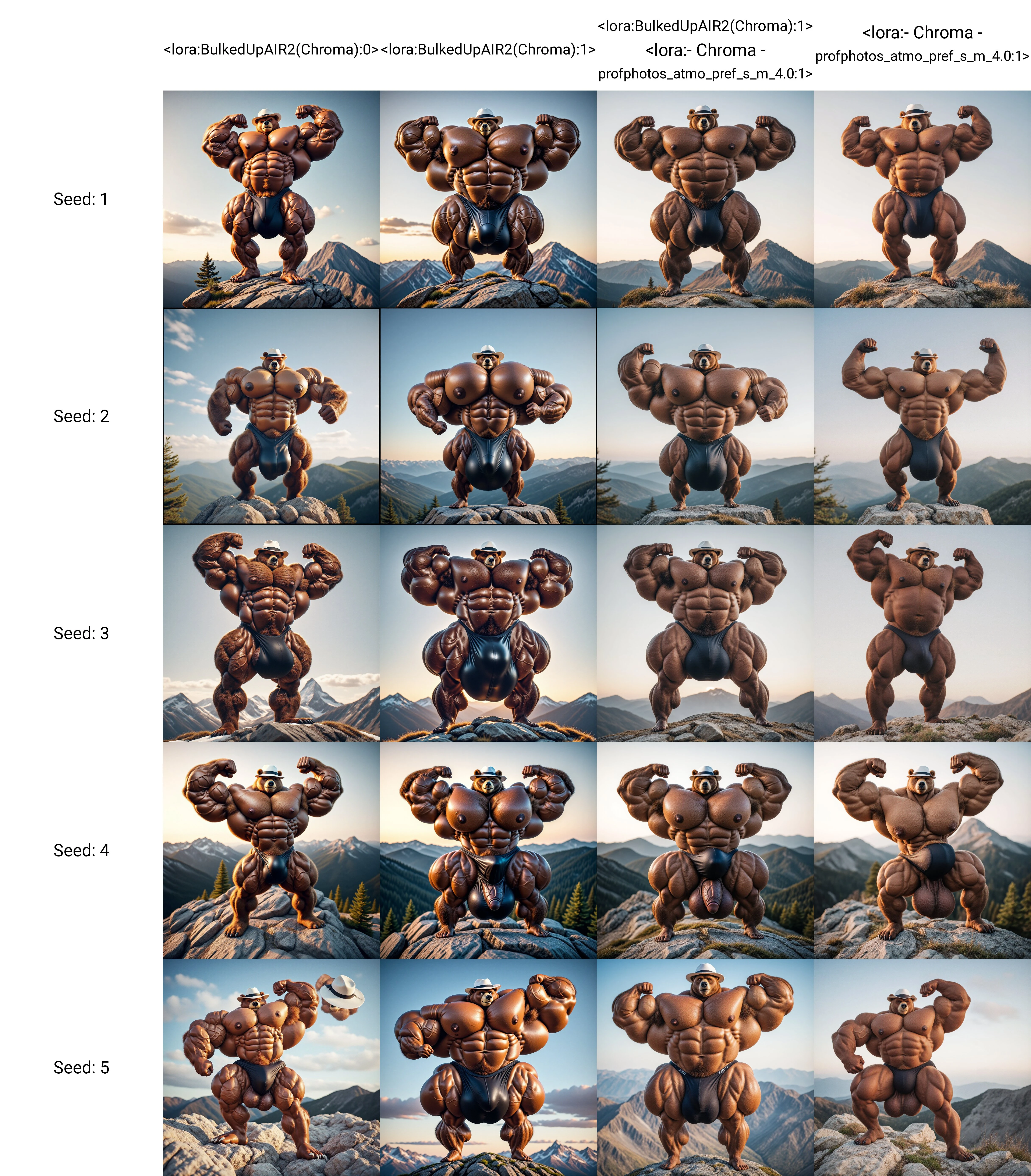 Here is the BulkedUp AI LoRA that was made with Kohya's GUI. The purpose of this LoRA was to create bigger buff dudes on different Stable Diffusion models. I personally use the LoRA between 0.3 to 0.5 strength, with 0.3 strength adding a bit of muscle and 0.5 going even bigger. Although this LoRA can work on different models, this LoRA works really well with a normal model merged with a furry one. One model merge that I'd like to recommend is a model merge between Gay621 Solo Male Focus and Homoerotic v2.0, with a weighted sum multiplier of either 0.3 or 0.5.