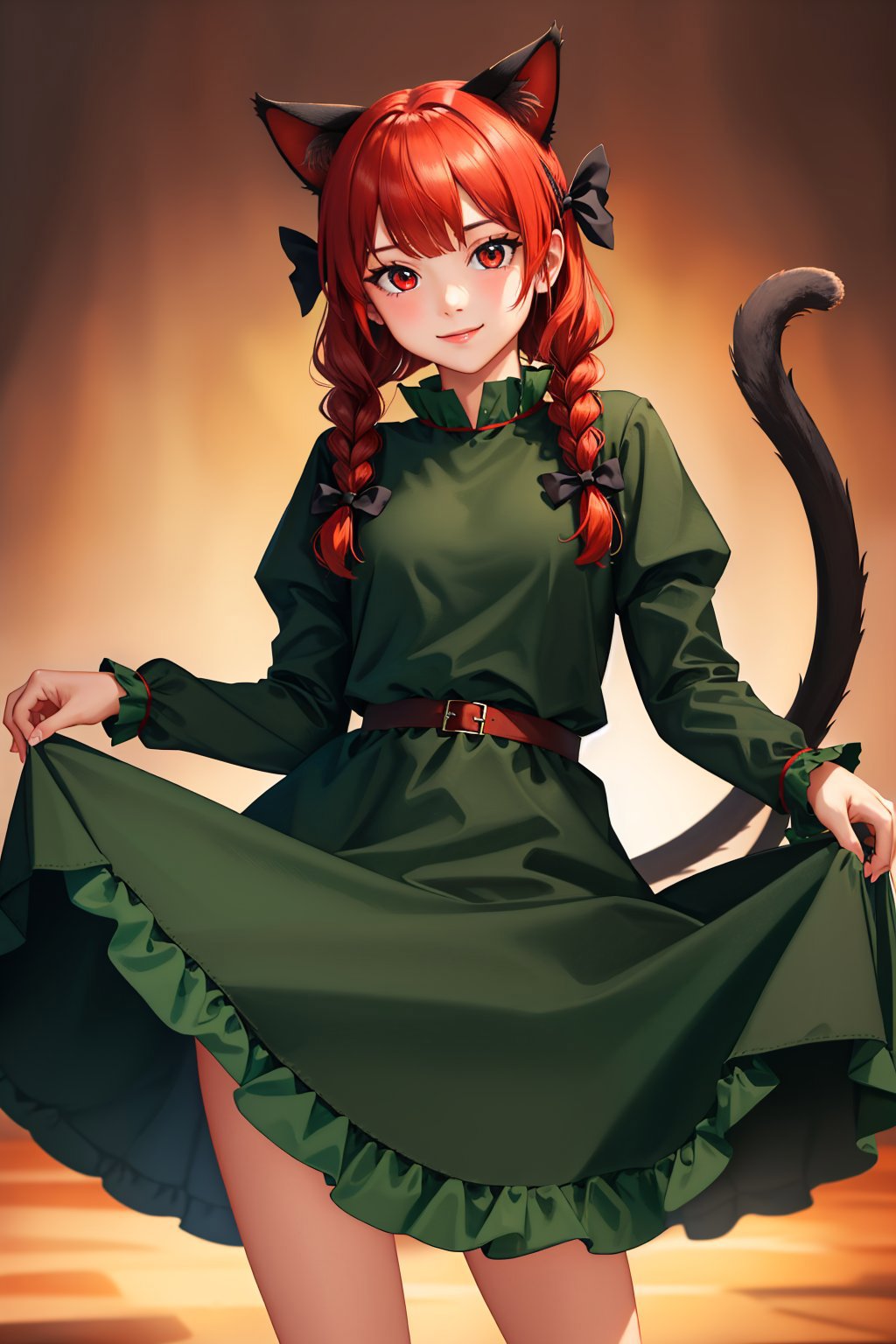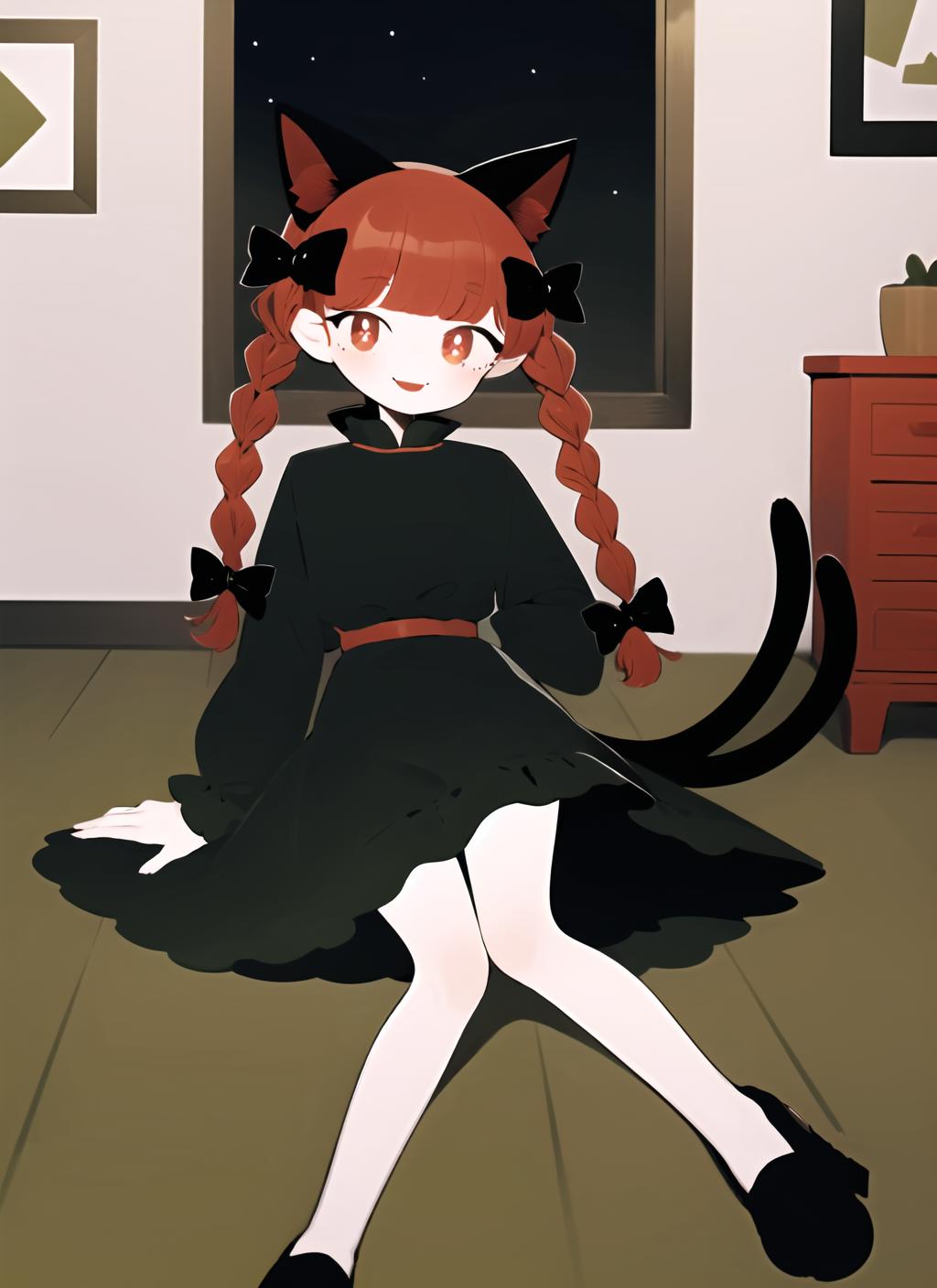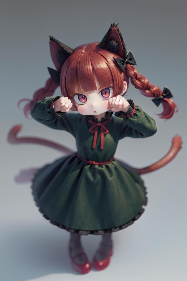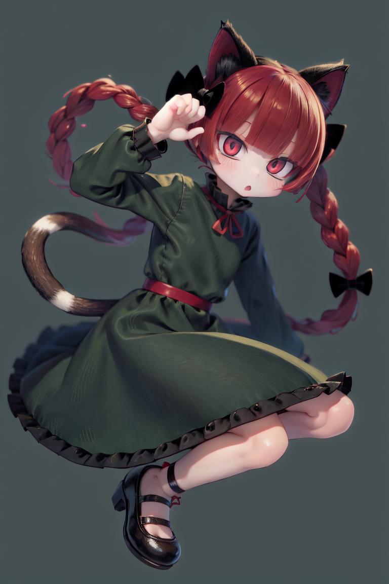 Trigger + Appearance: kaenbyou rin, twin braids, hair bow, cat tail