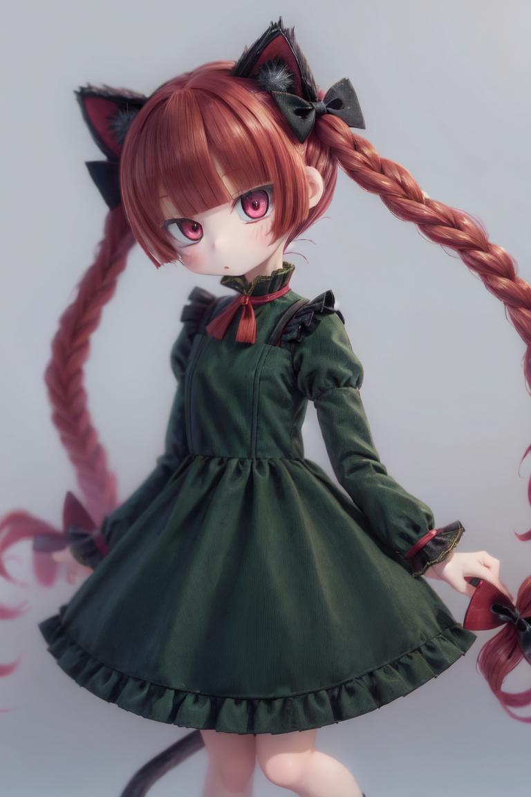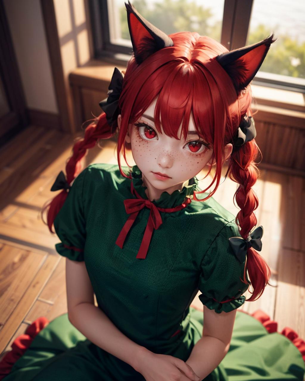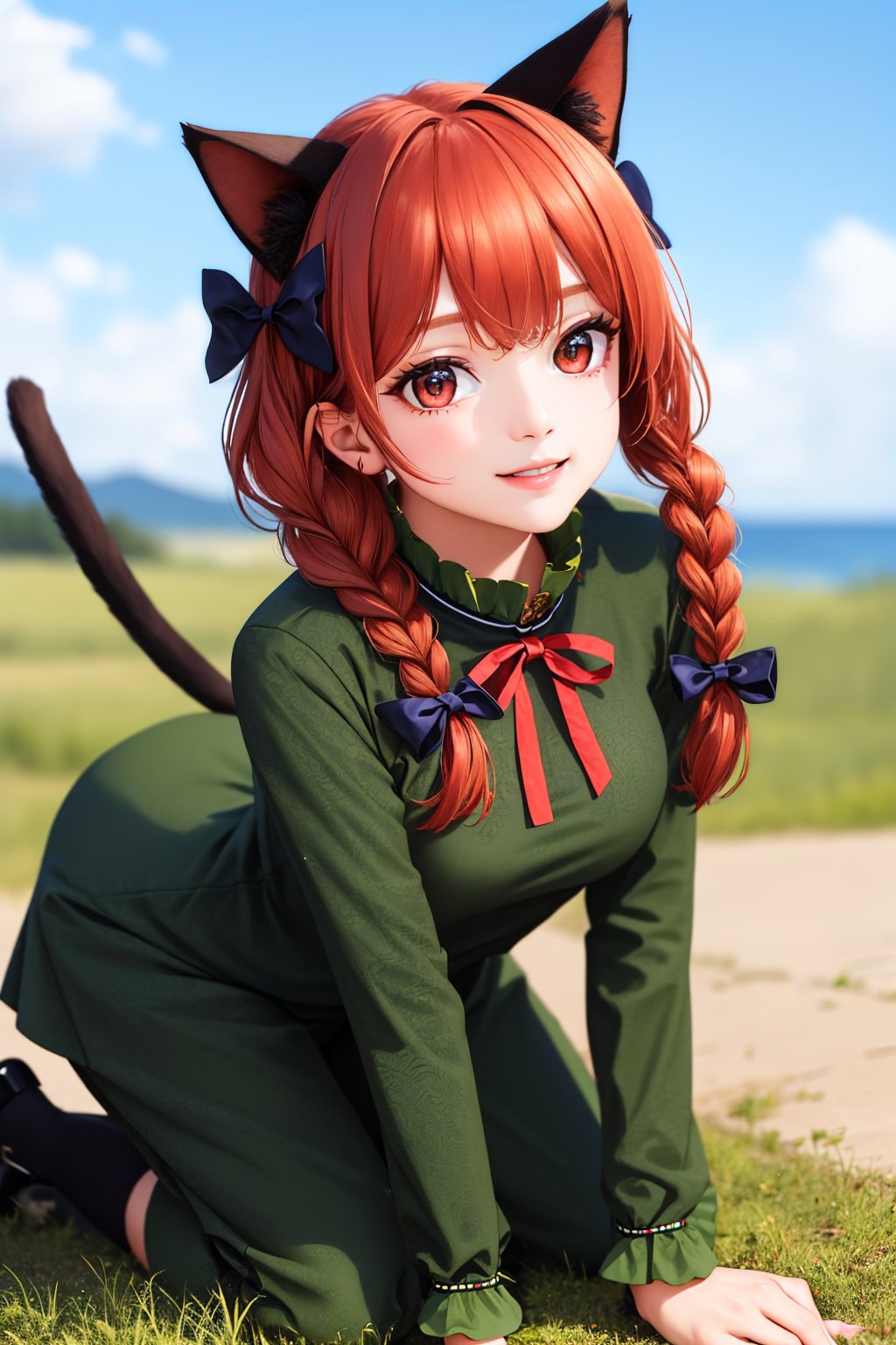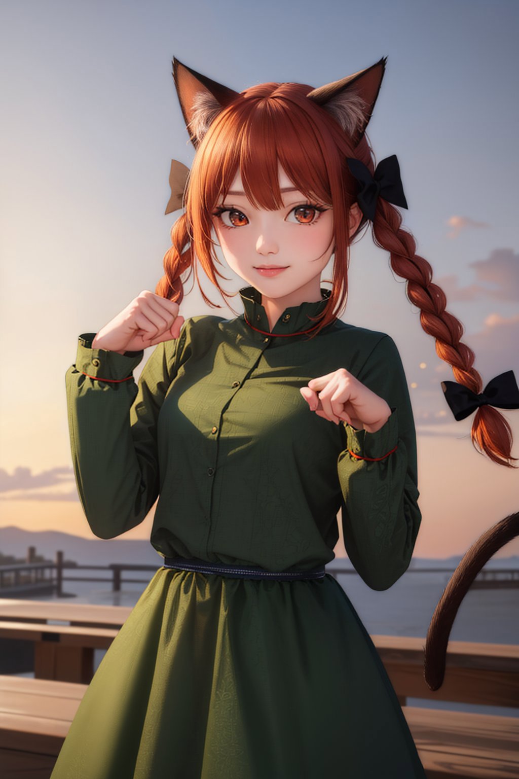 Trigger + Appearance: kaenbyou rin, twin braids, hair bow, cat tail