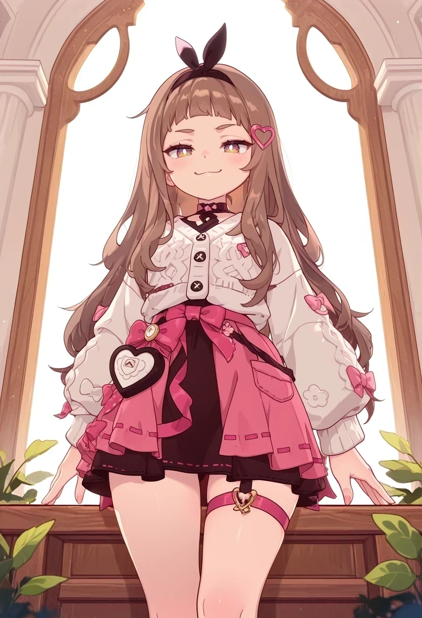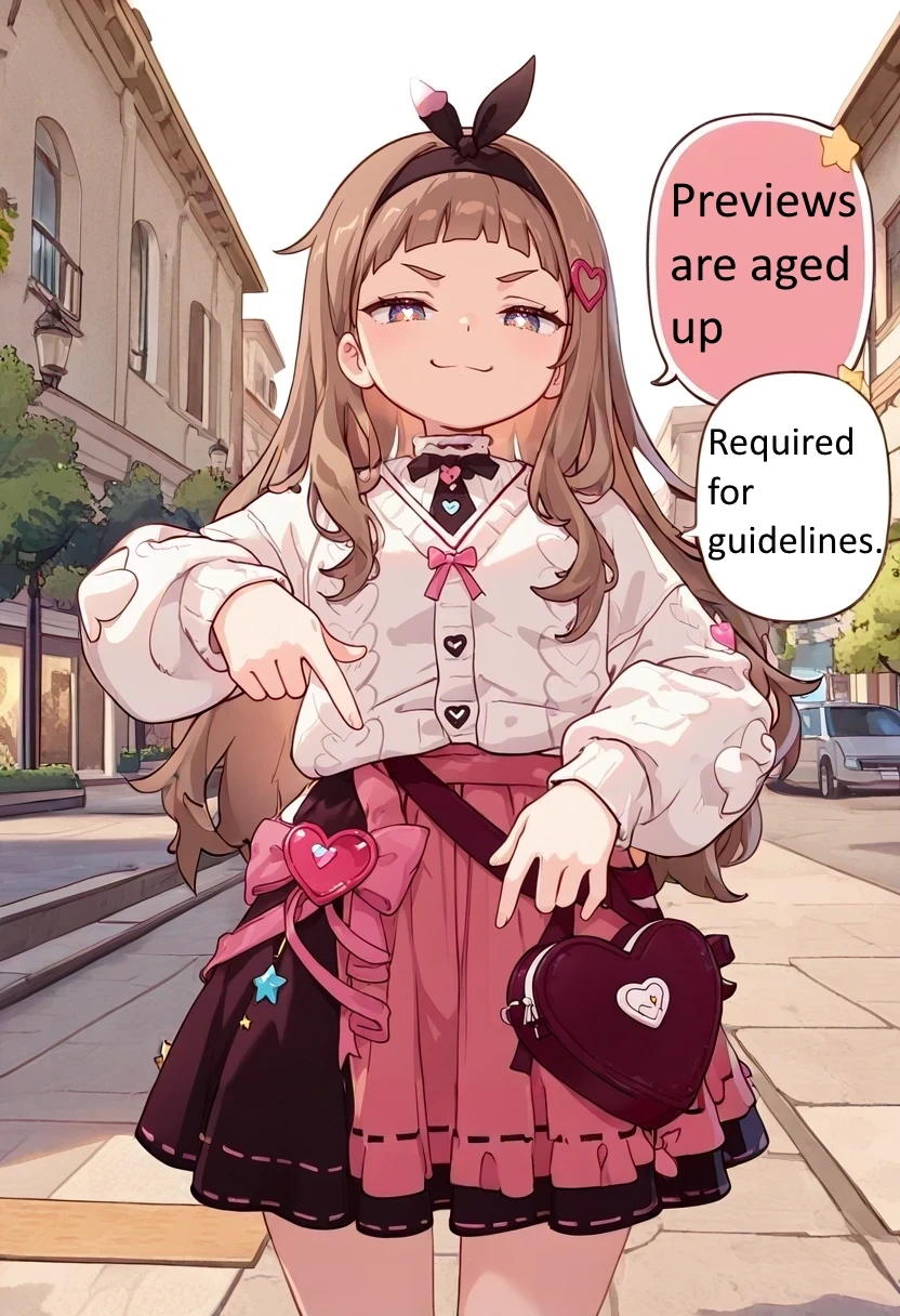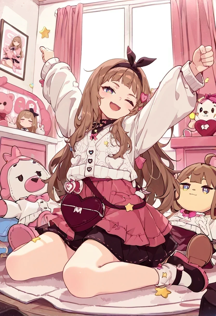 maplehna,black hairband,star \(symbol\),white sweater,black skirt,pink skirt,heart hair ornament,Description