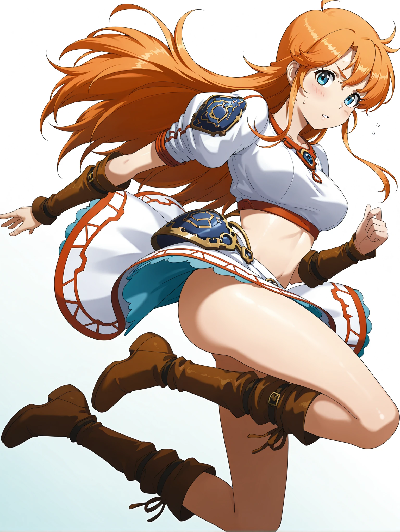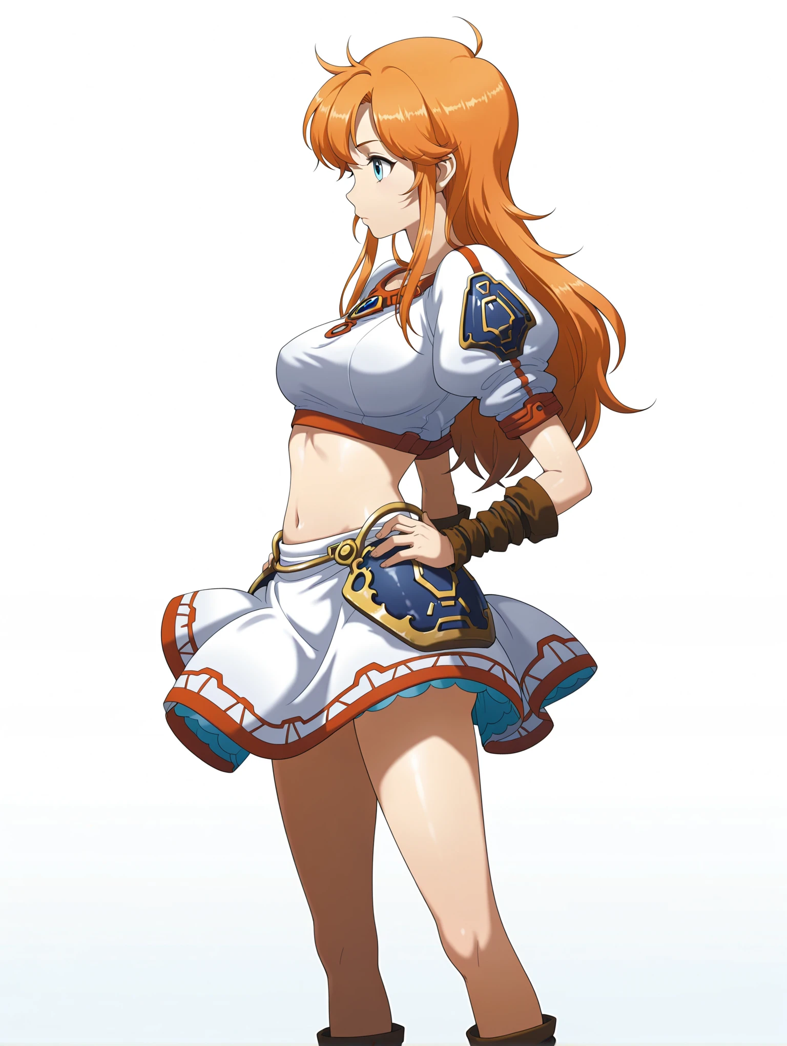 c_clothes,crop top,white miniskirt,brown footwear,