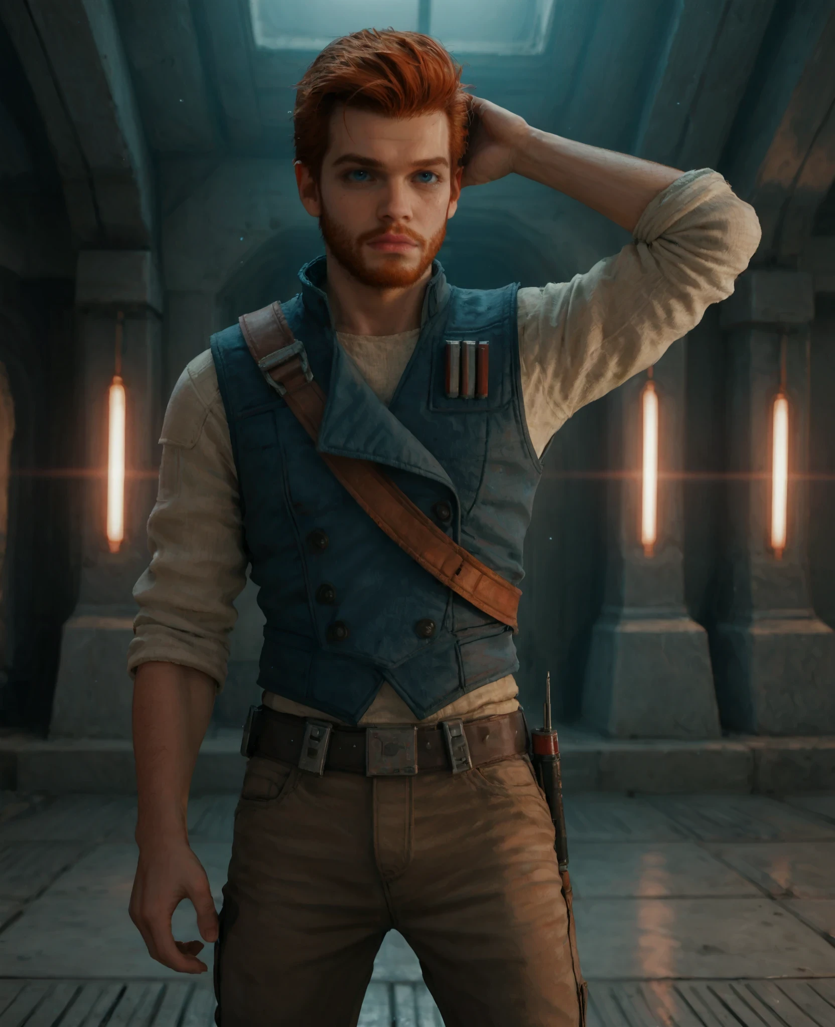 Appearance: C4lK3st1s, 1boy, male focus, short hair, red hair, blue eyes, lips, realistic