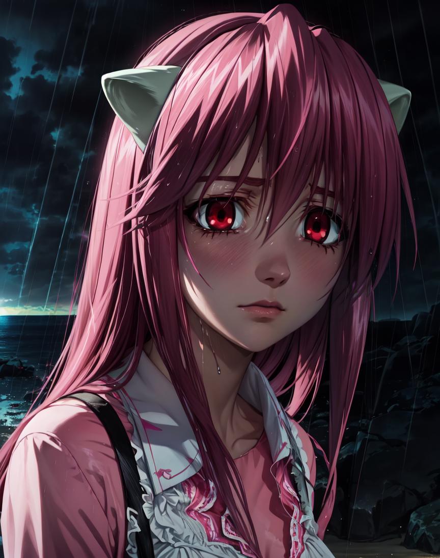 Sometimes needs helper prompts to correct hair color/length and eye color. Start without them and add if needed. Often needs (cat ears, fur) in negative prompt, most checkpoints think the Diclonious horns are ears.