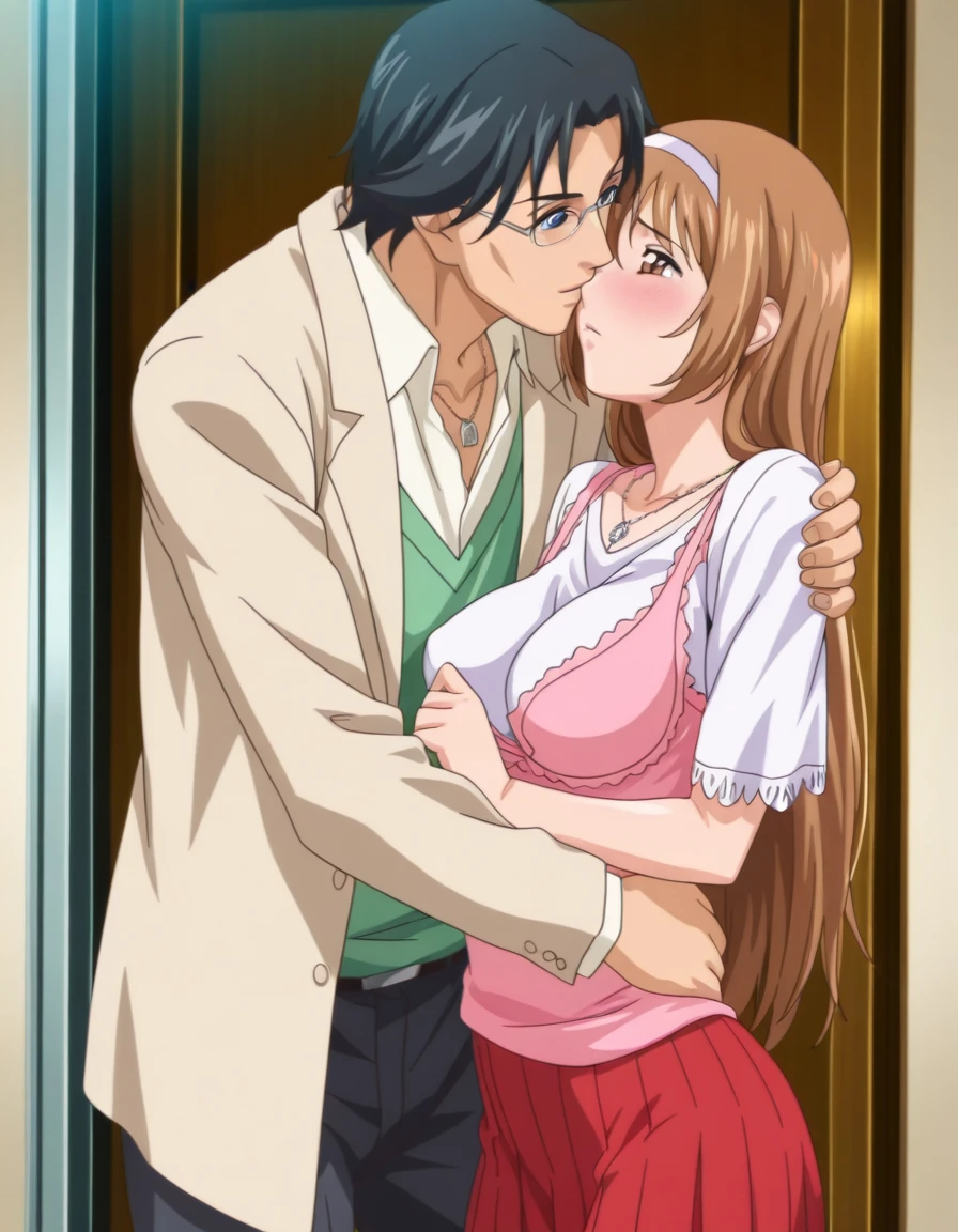 mai_owks,mai_ayumuoks,very_long_hair,brown_hair,hair_between_eyes,brown_eyes,white_hairband,necklace,pink_shirt,long_sleeves,yellow_jacket,open_cardigan,pleated_skirt,white_skirt,white_socks,white_sneakersUsing the prompt 'mai_owks' can obtain the style of the work.