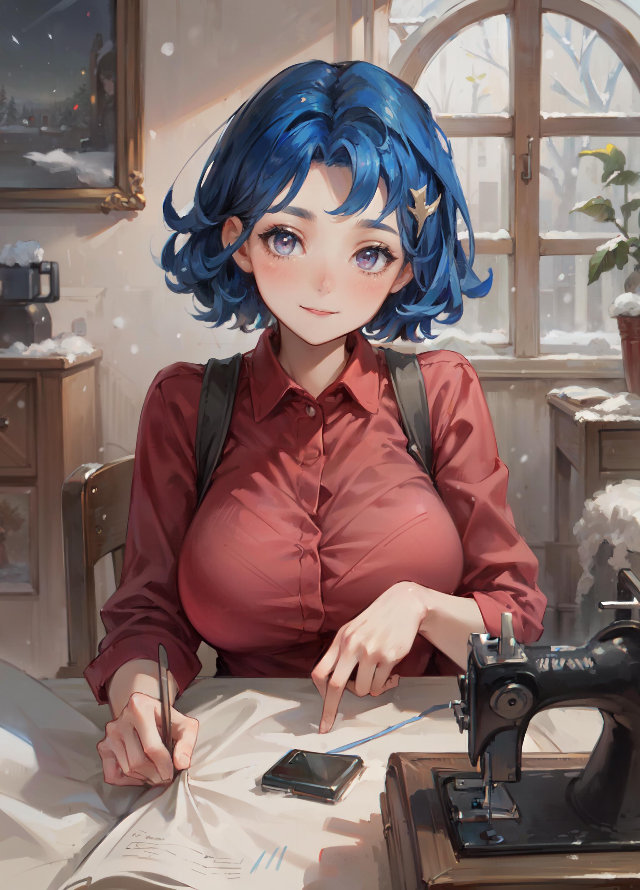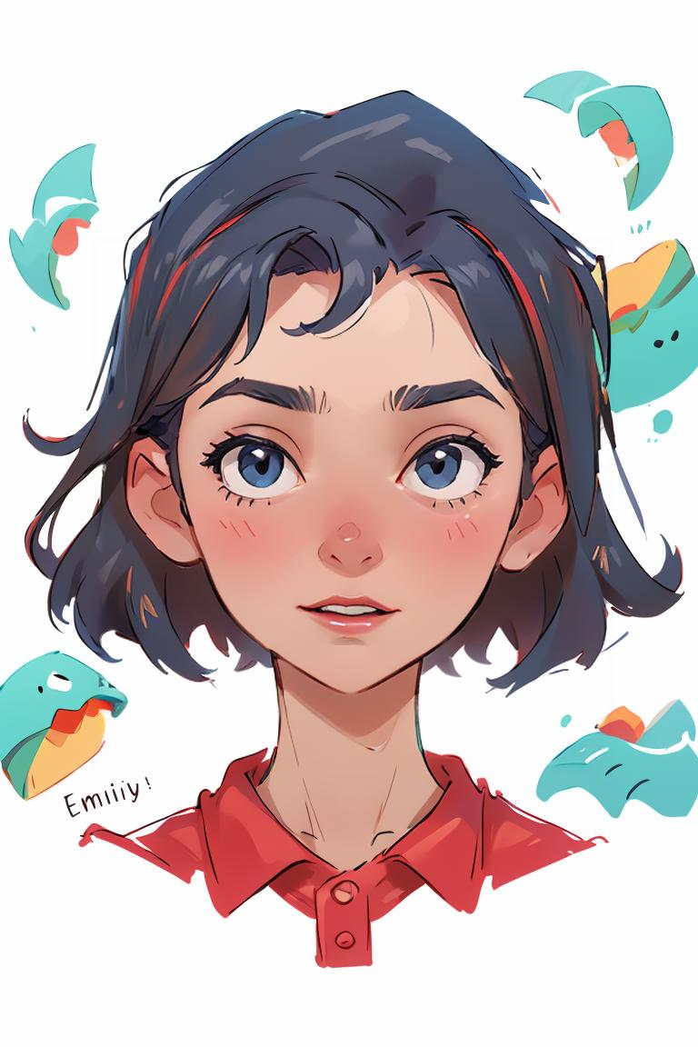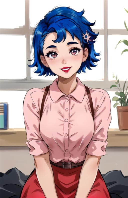 Support me: Ko-fiCommissions: hereEmily from Stardew ValleyTested at 0.7-1Trigger Wordsemily, short hair, blue hair, pink eyes, hair ornament,add red dress, pink shirt,