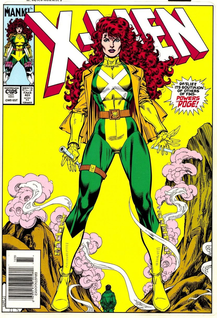 Keywords: Jim Lee art, comic book style, 1980s comic art, superhero art, Rogue fan art, dynamic poses, retro comic art, digital illustration, Jim Lee LoRA, bold comic art, superhero illustration