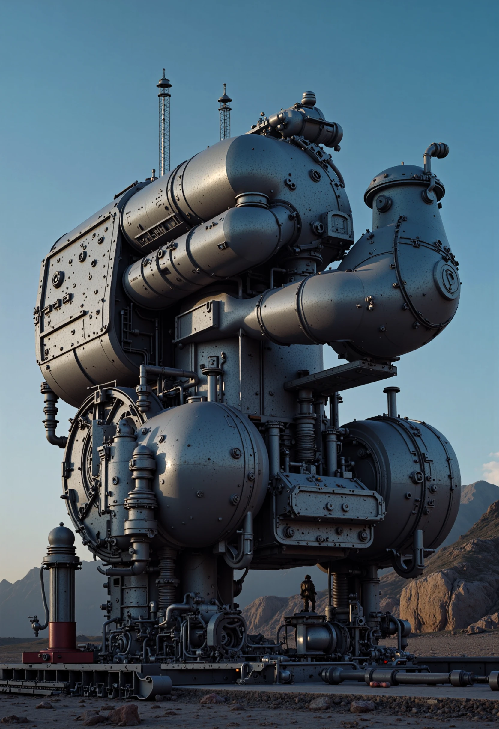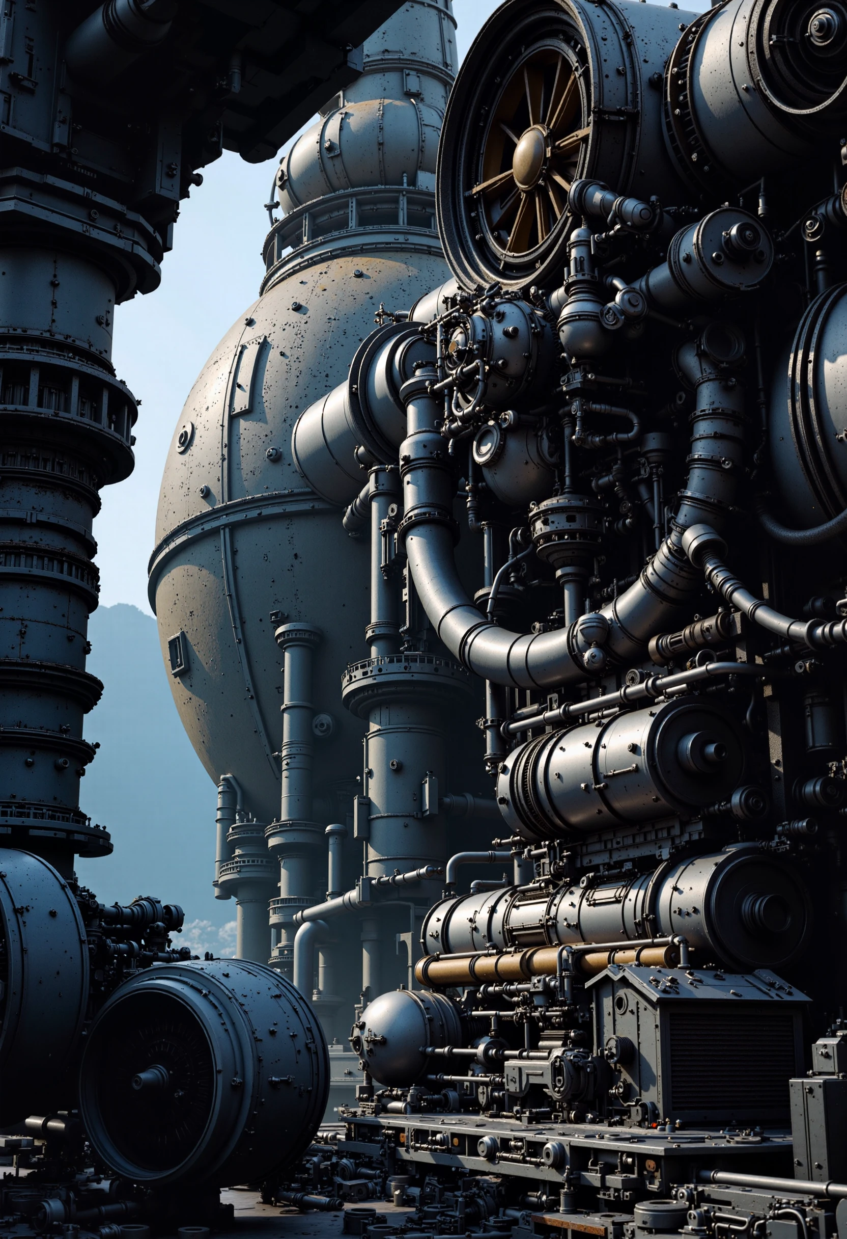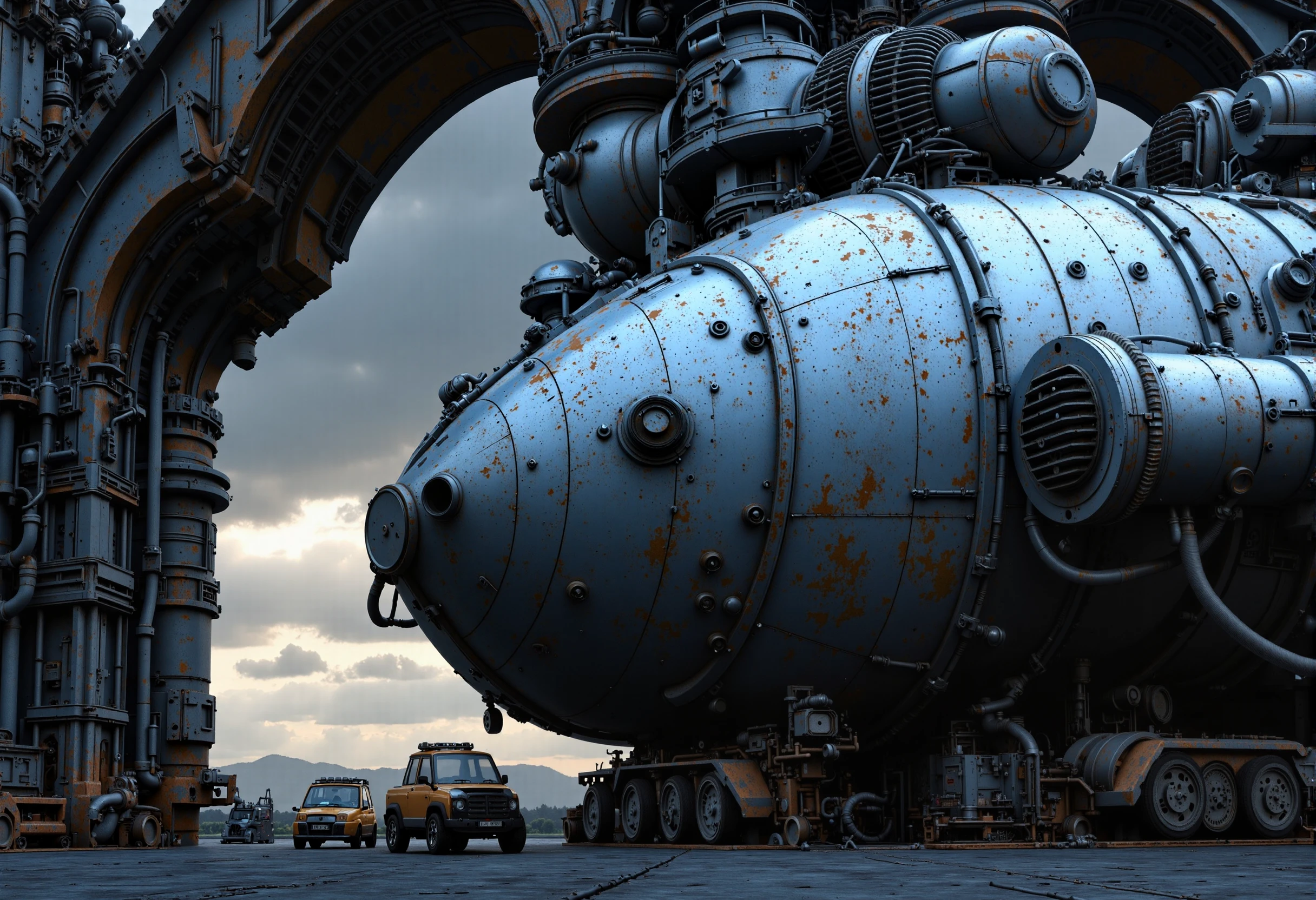 A lora for all sorts of machinery, from big trucks to factories, Flux has a liking for round shapes so you will have to prompt for more angular stuff, the images are in the training but the default is round pipes etc