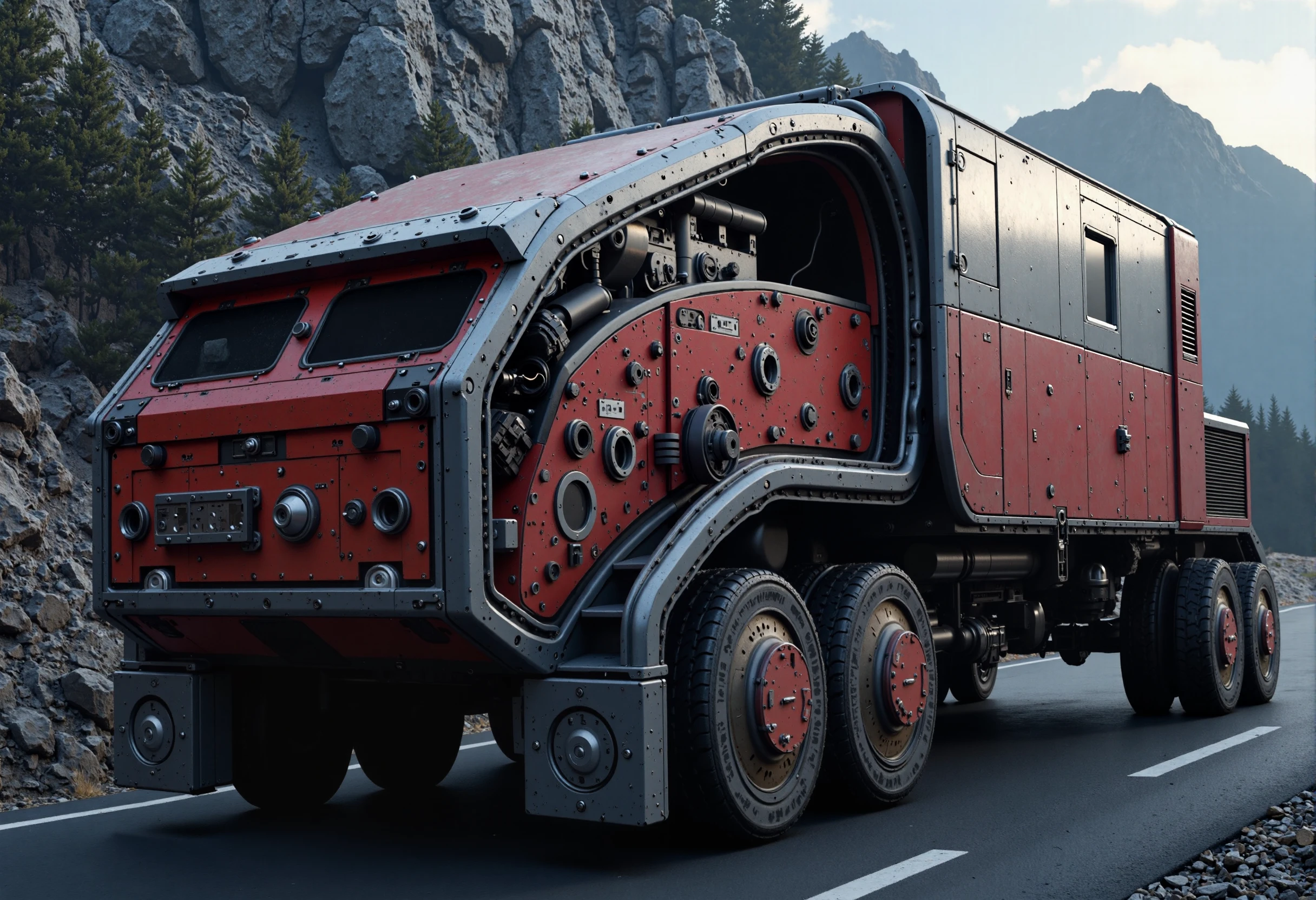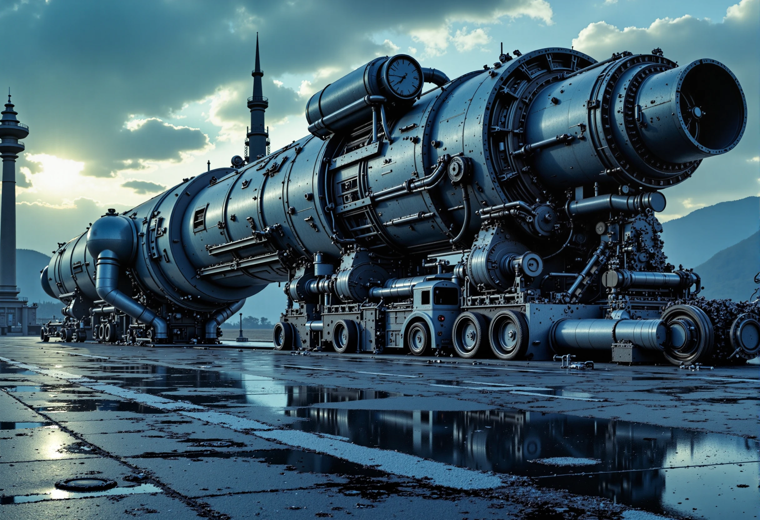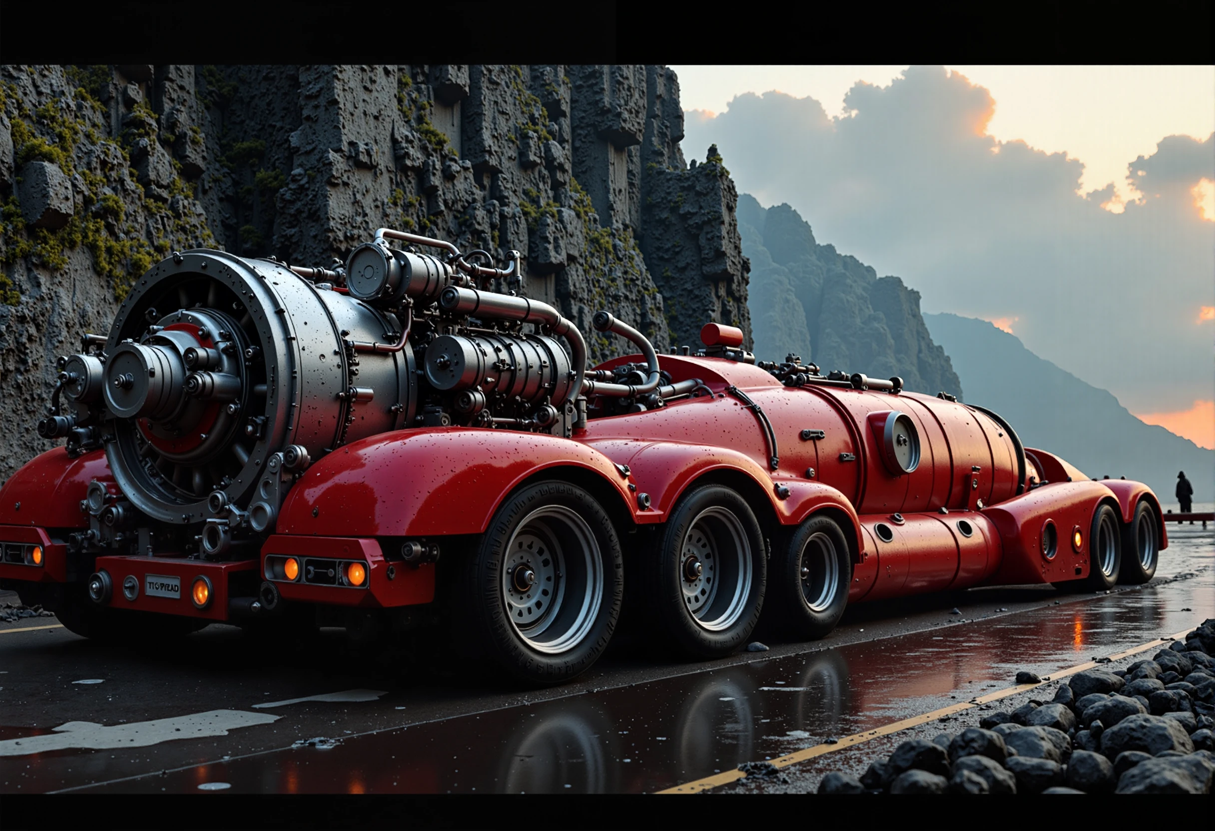 A lora for all sorts of machinery, from big trucks to factories, Flux has a liking for round shapes so you will have to prompt for more angular stuff, the images are in the training but the default is round pipes etc