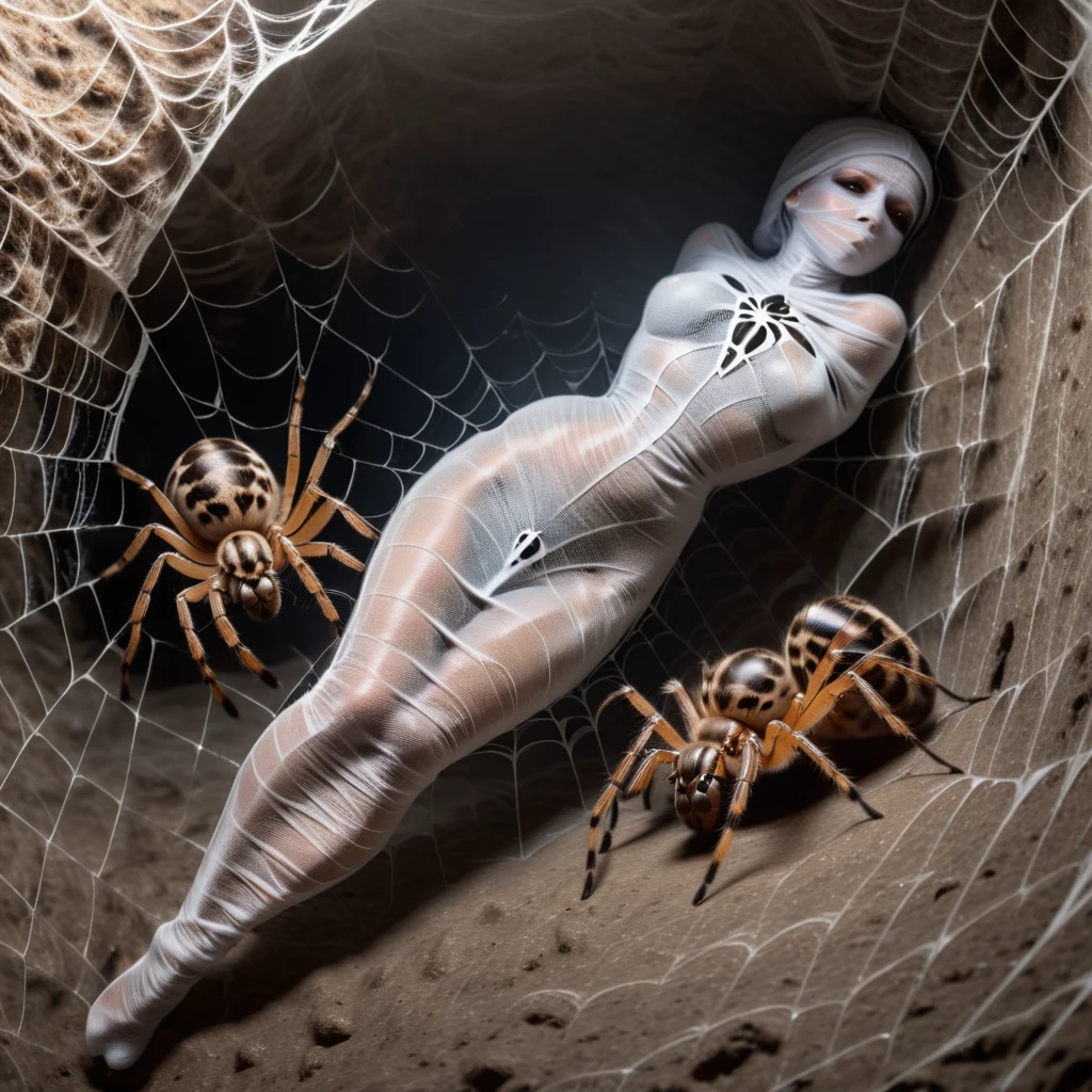 Being wrapped into a cocoon by a spider concept.