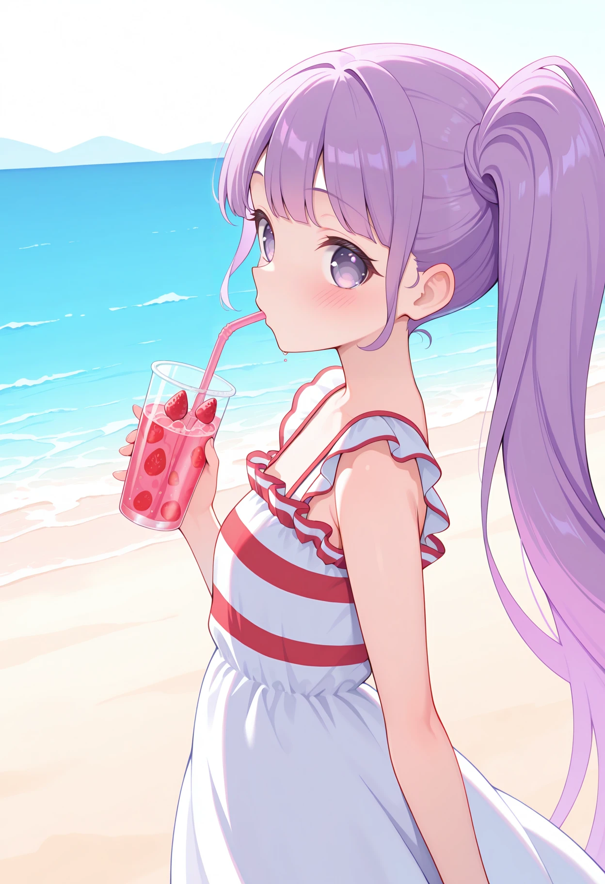 pparanon, purple hair, side ponytail, very long hair, purple eyes,