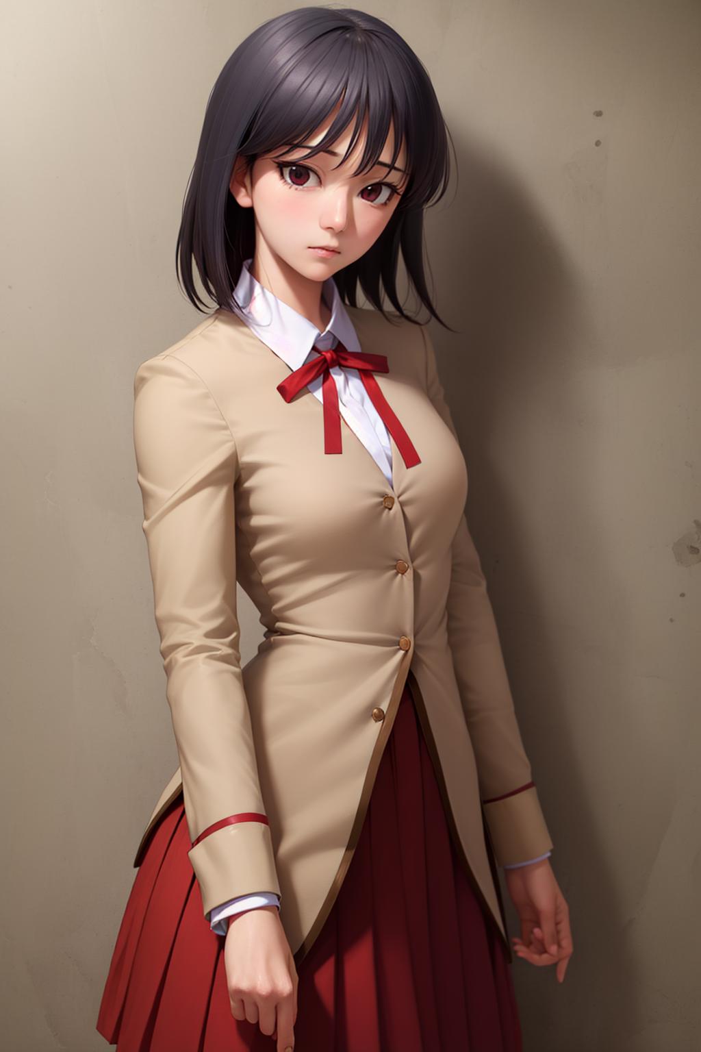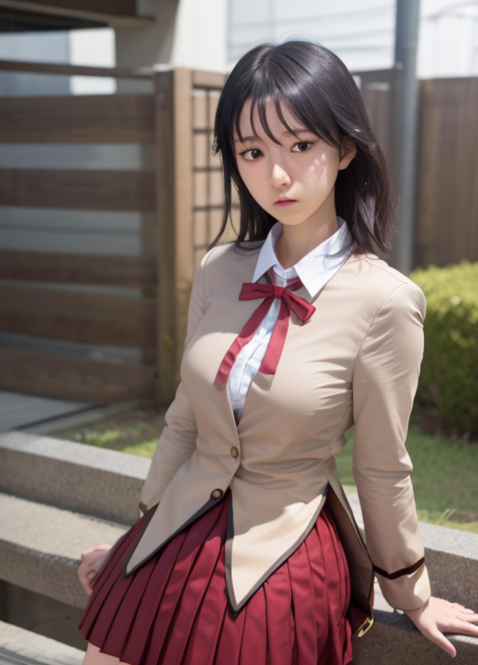 Default Outfit: school uniform, ribbon, pleated skirt