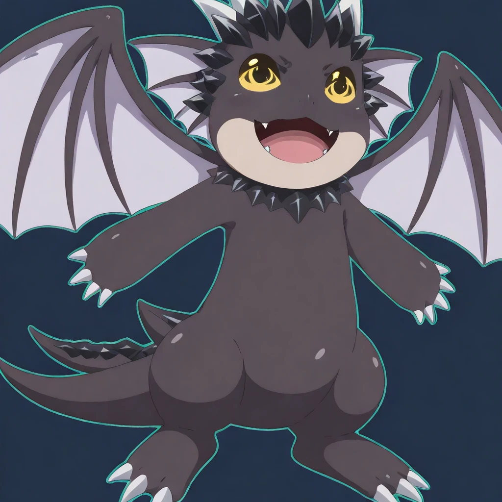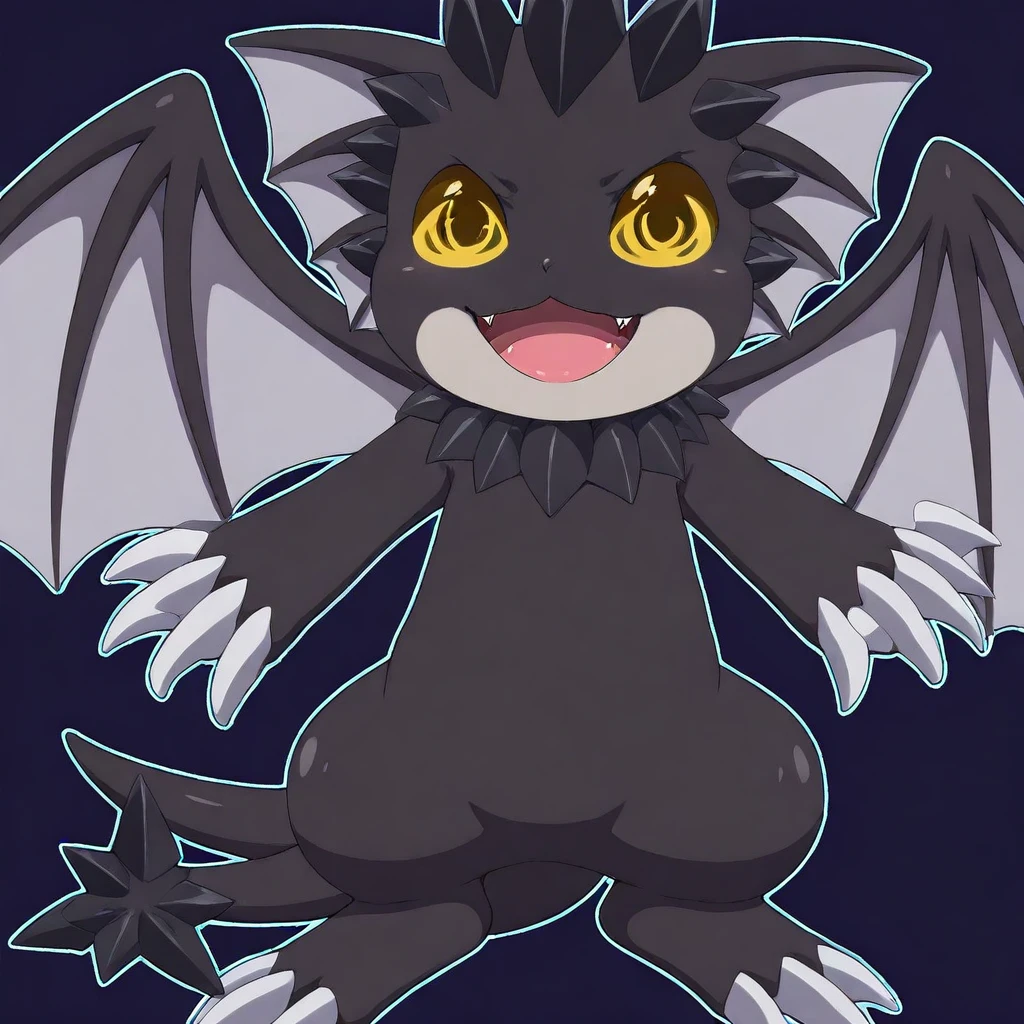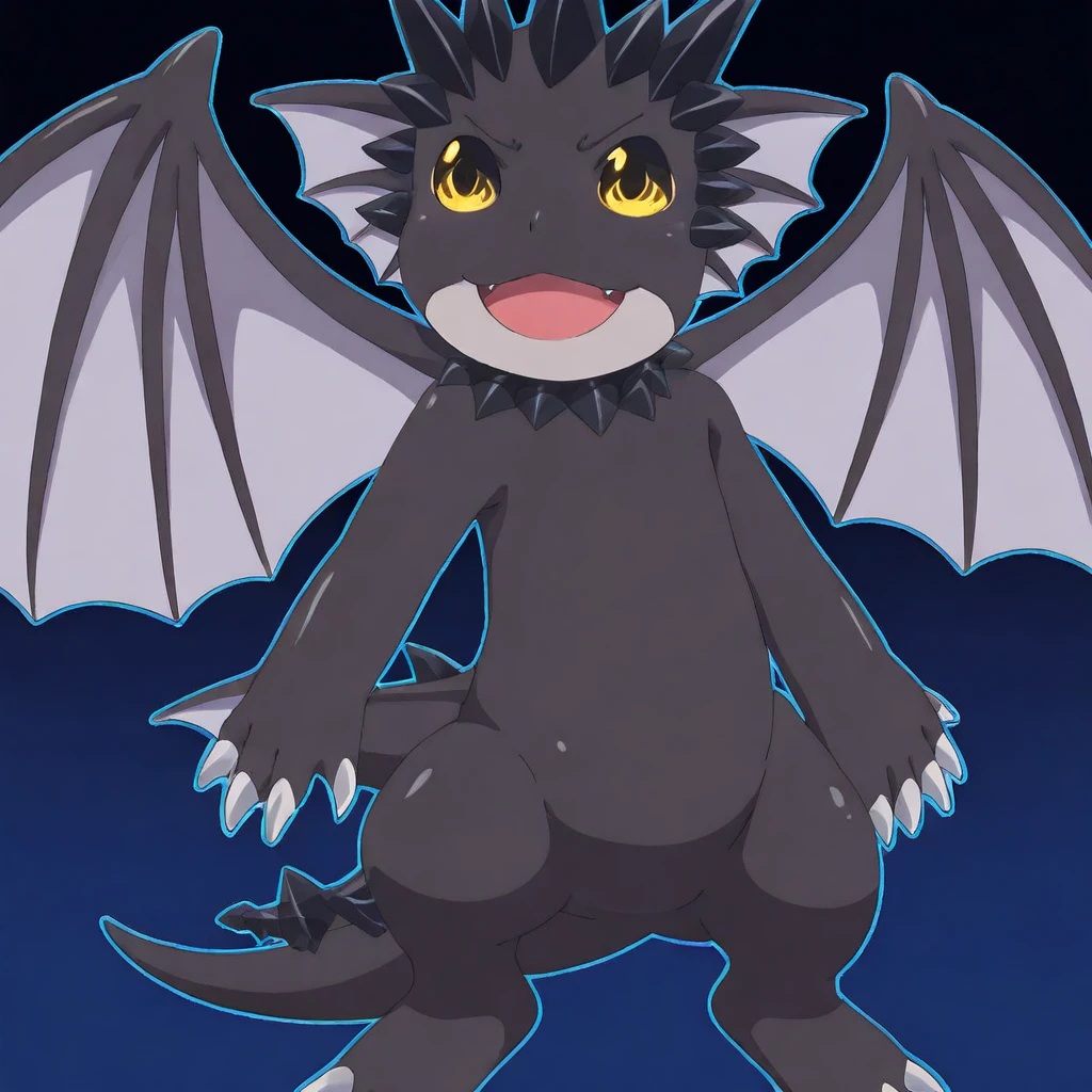 Dragon, Black skin,yellow sclera,fangs,white claws,white horns,black tail,