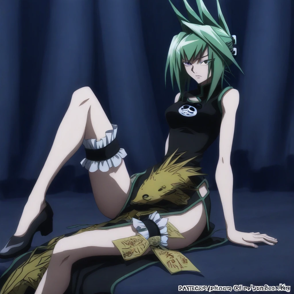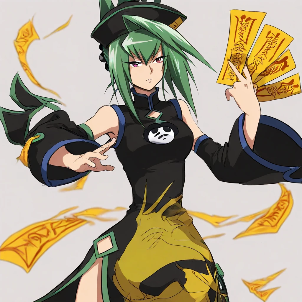 qingdai guanmao, black dress, detached sleeves, hat, ofuda,